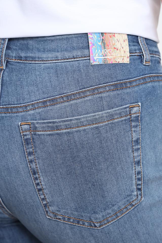 Эти джинсы от Marc Cain станут отличным дополнением к вашему гардеробу. Модель выполнена в голубом цвете и имеет слегка зауженный крой, который подчеркивает фигуру.