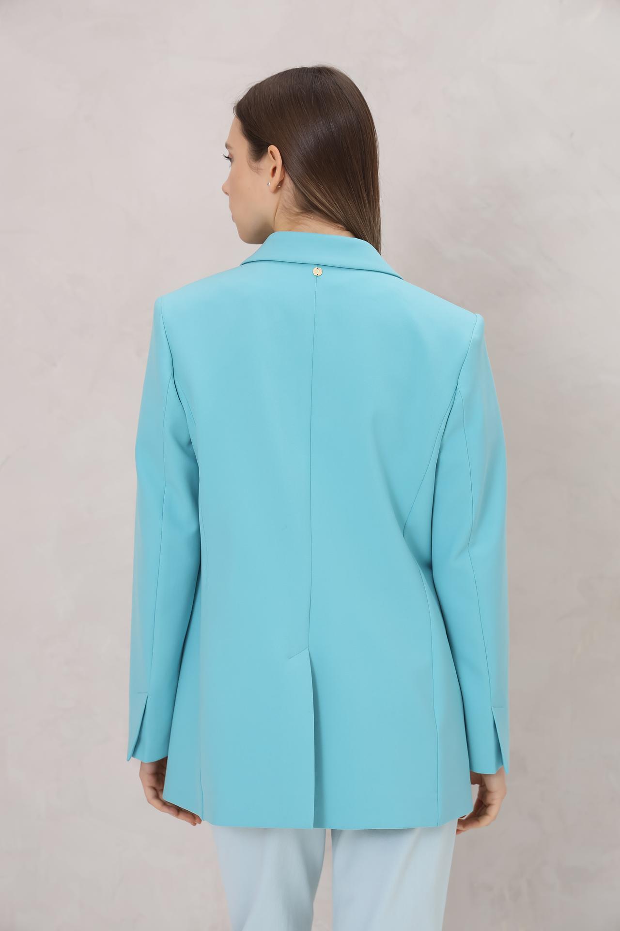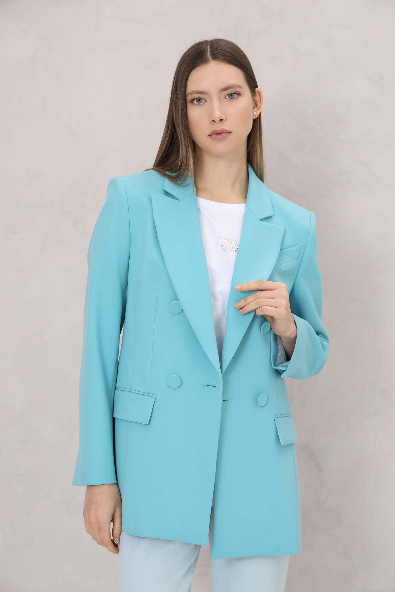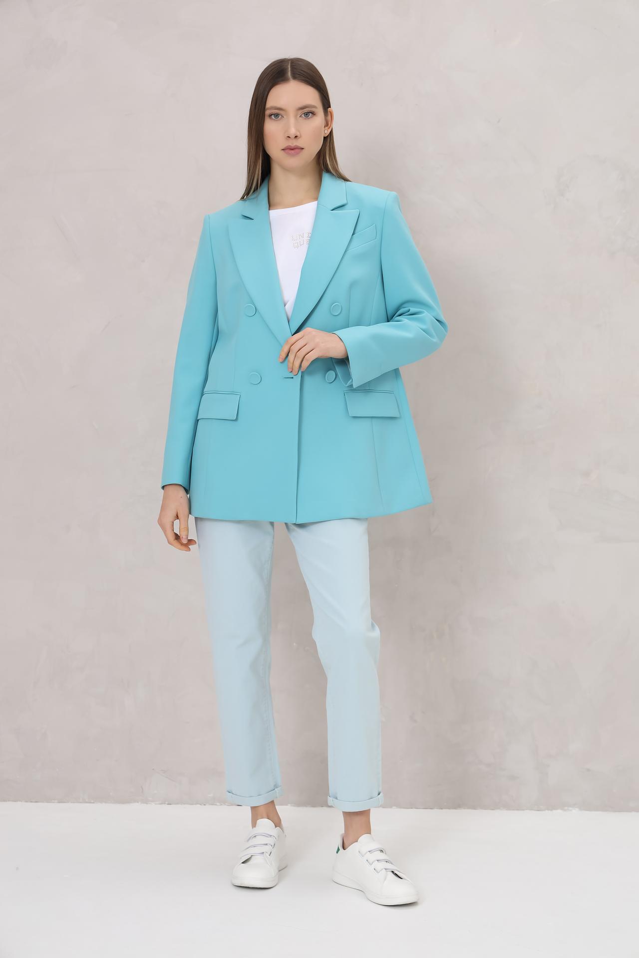 Элегантный жакет от Marc Cain в нежном бирюзовом оттенке станет отличным дополнением к вашему гардеробу. Этот двубортный жакет идеально подходит для создания стильных и современных образов. Сочетание высококачественных материалов обеспечивает комфорт и долговечность изделия. Подходит для деловых встреч и повседневной носки.