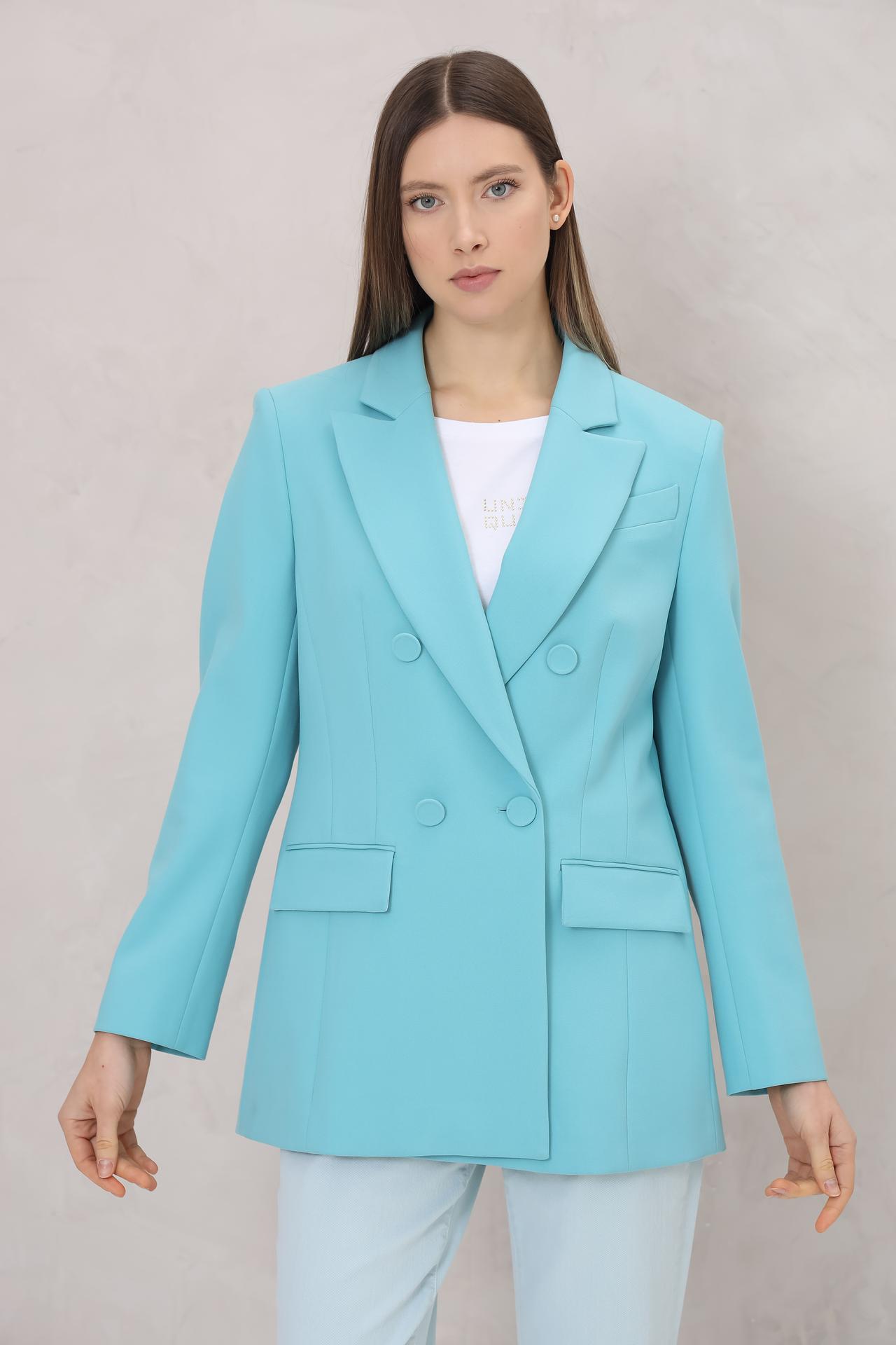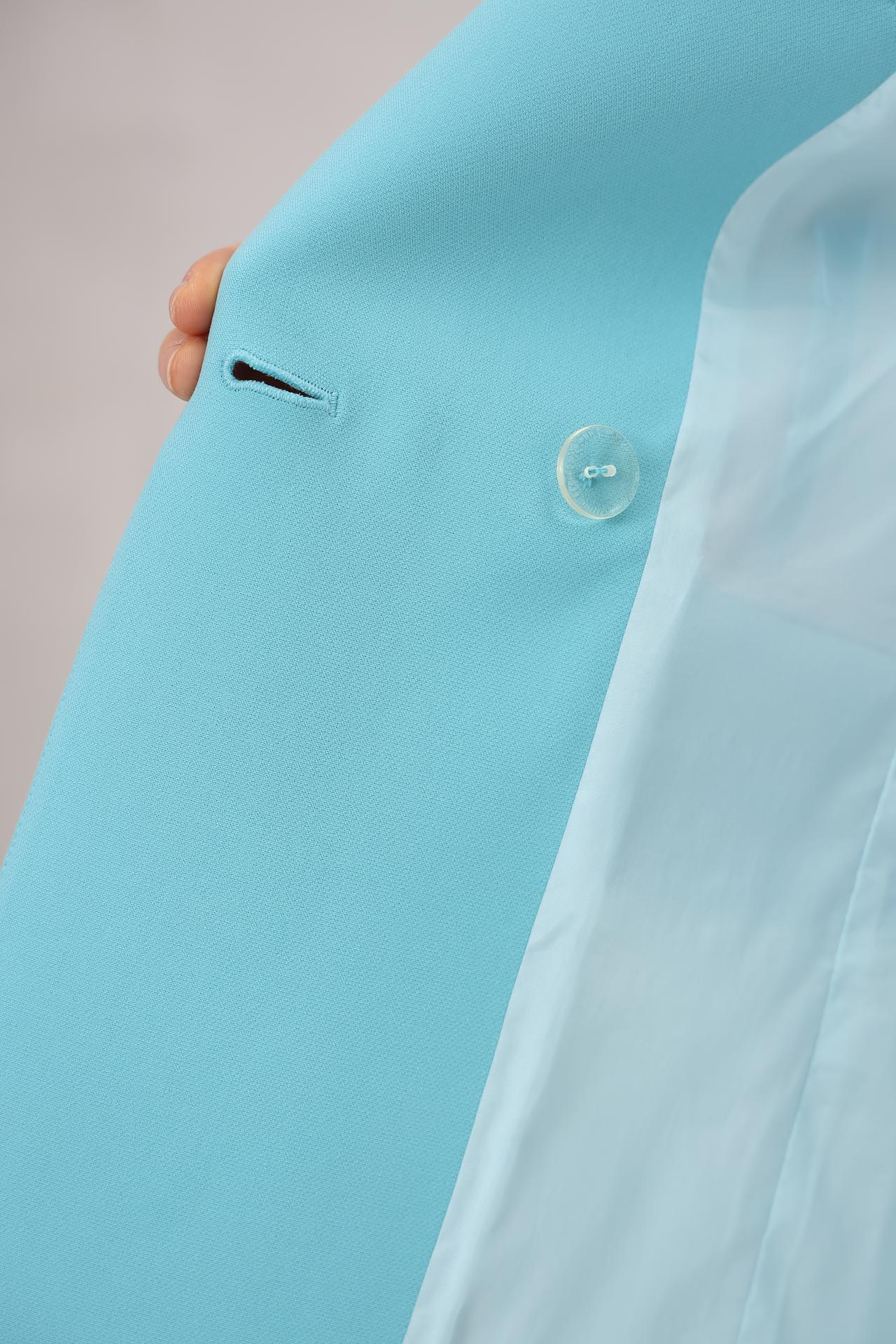 - Двубортный фасон. Классический дизайн, который всегда в моде. Придает образу строгость и элегантность.