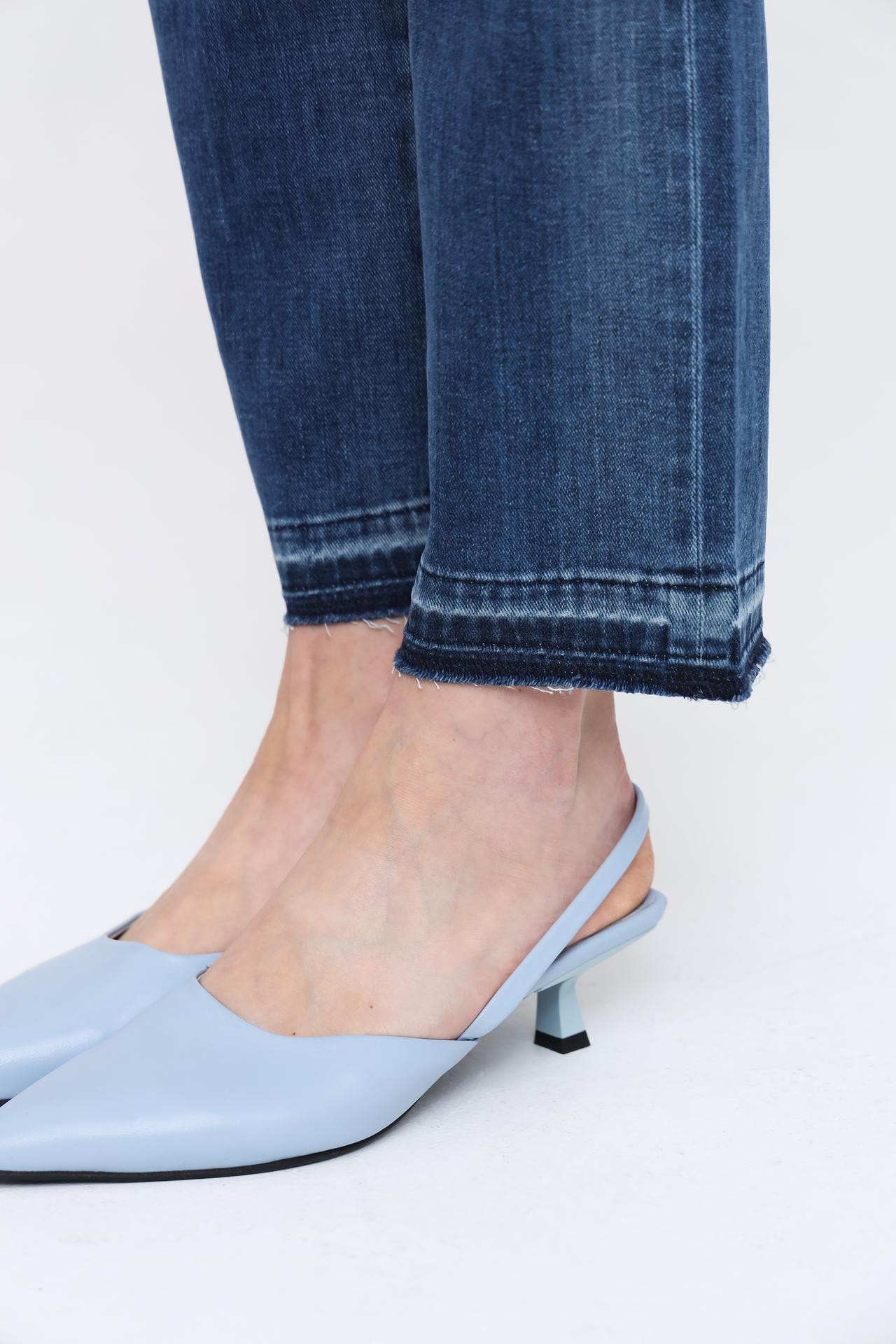 Джинсы имеют укороченную длину и необработанный край, что добавляет им непринужденности и современного шарма. Классический синий цвет позволяет легко сочетать их с различными элементами гардероба, создавая бесчисленное количество стильных комбинаций.