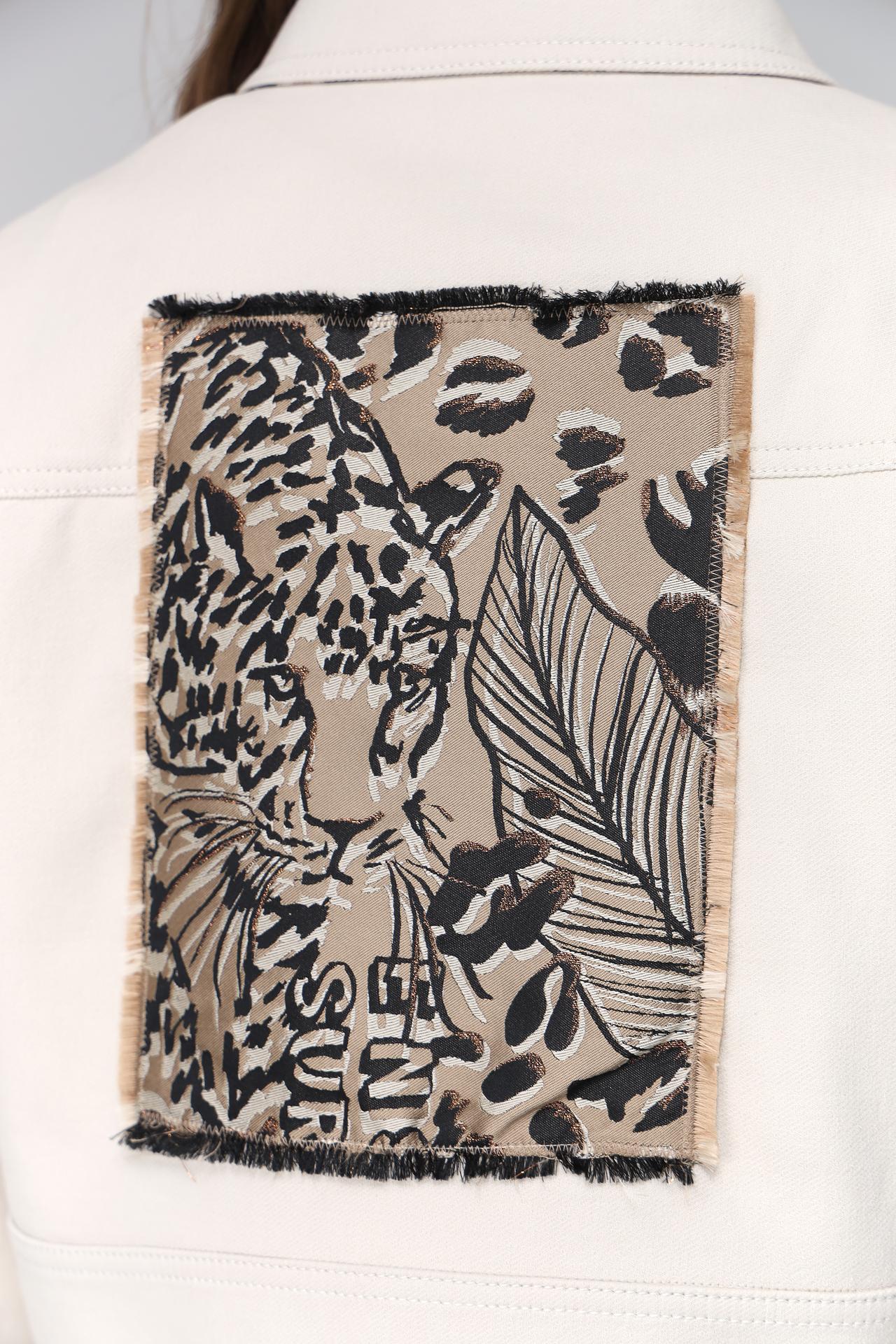 - Декоративные элементы. Жакет украшен оригинальной вставкой на спинке, добавляющей образу неповторимый шарм и индивидуальность.