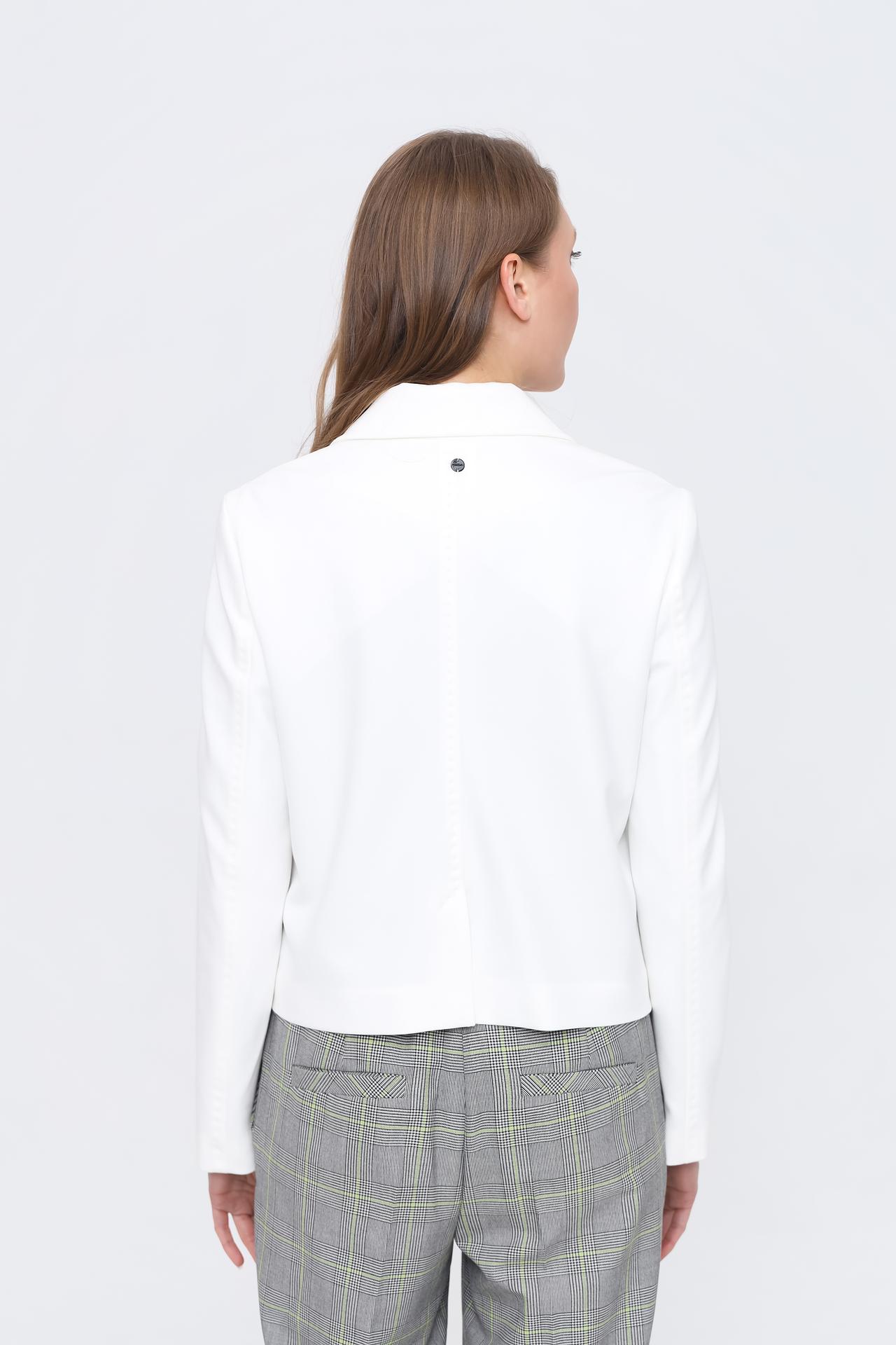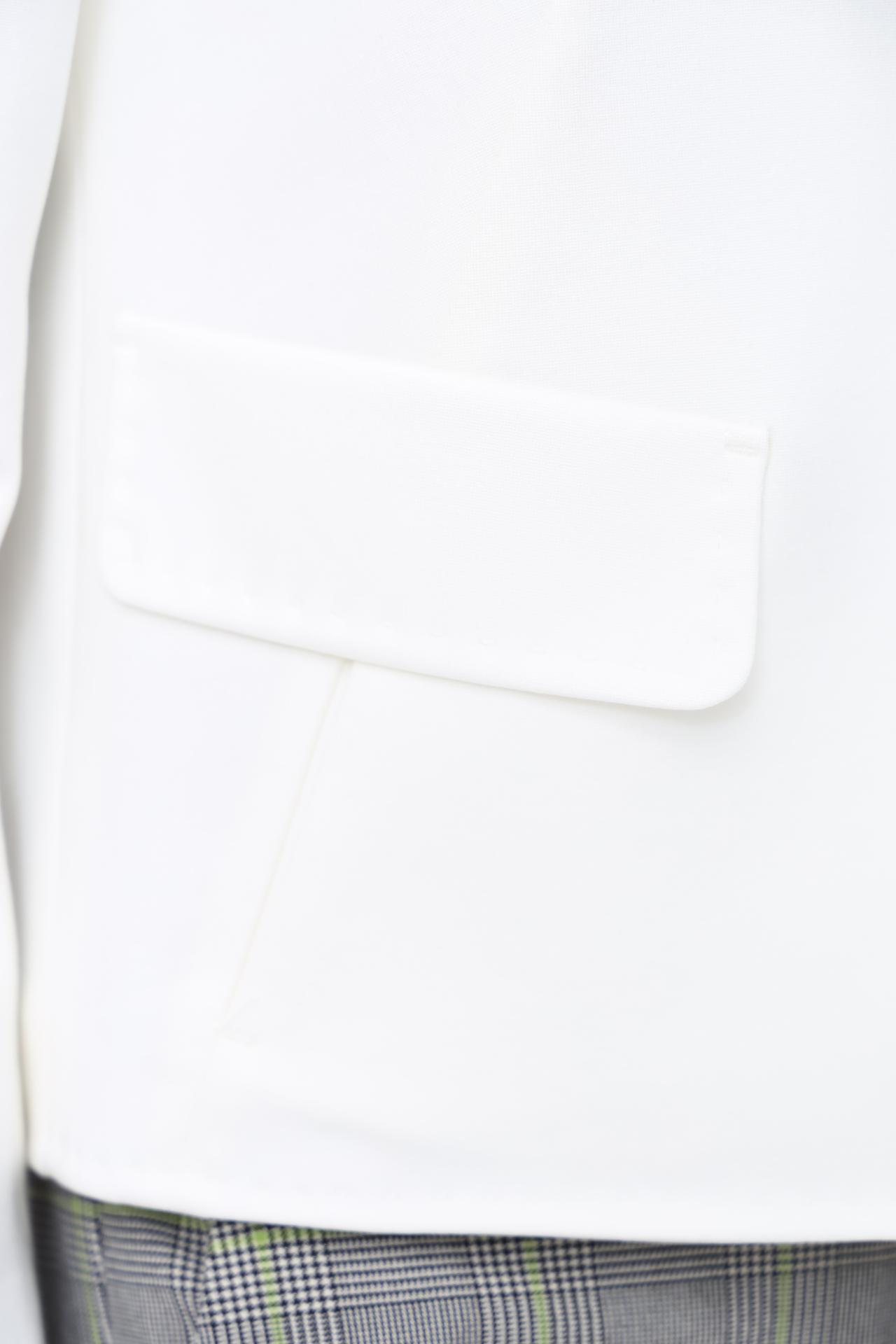 - Универсальность: Белый жакет легко вписывается в различные стили, от строгого офисного до расслабленного кэжуал, делая его незаменимым элементом базового гардероба.