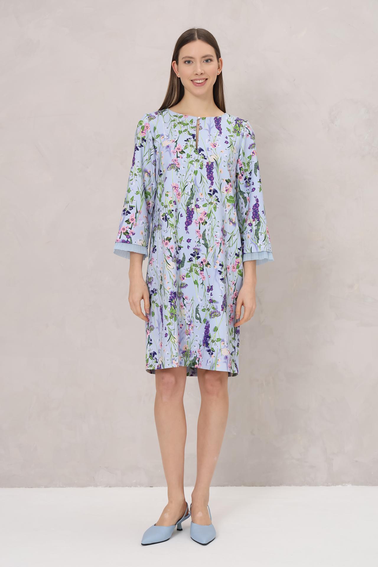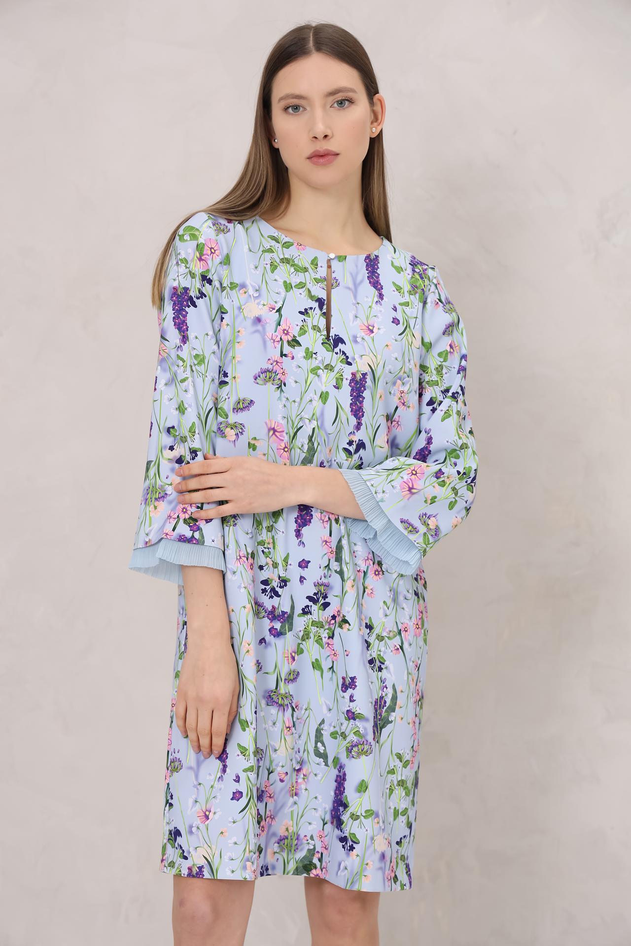 Платье Marc Cain небесно-голубое с цветочным принтом