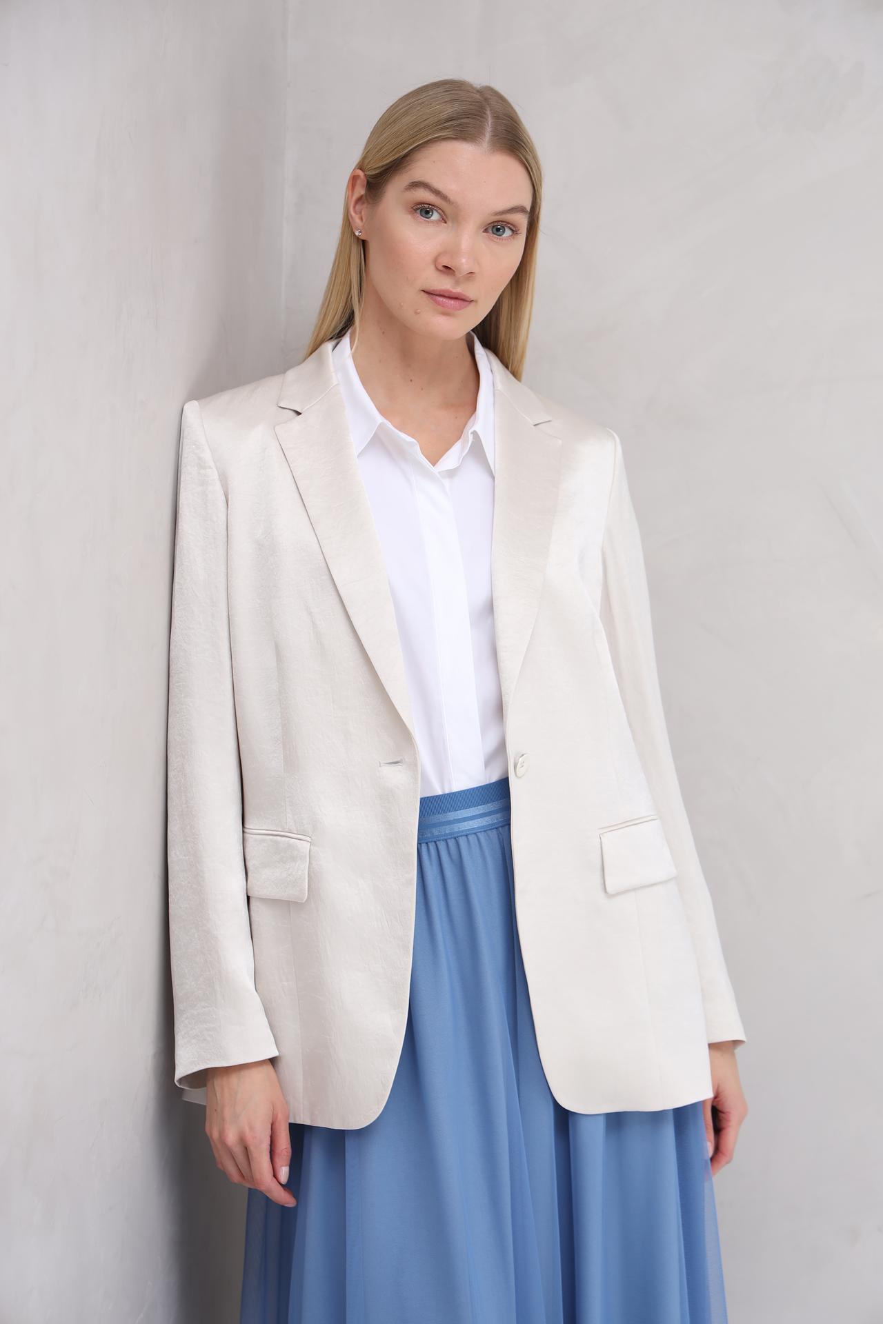- Элегантный дизайн: Классический крой с изящными лацканами и одной пуговицей создает утонченный силуэт, подходящий для любого случая.