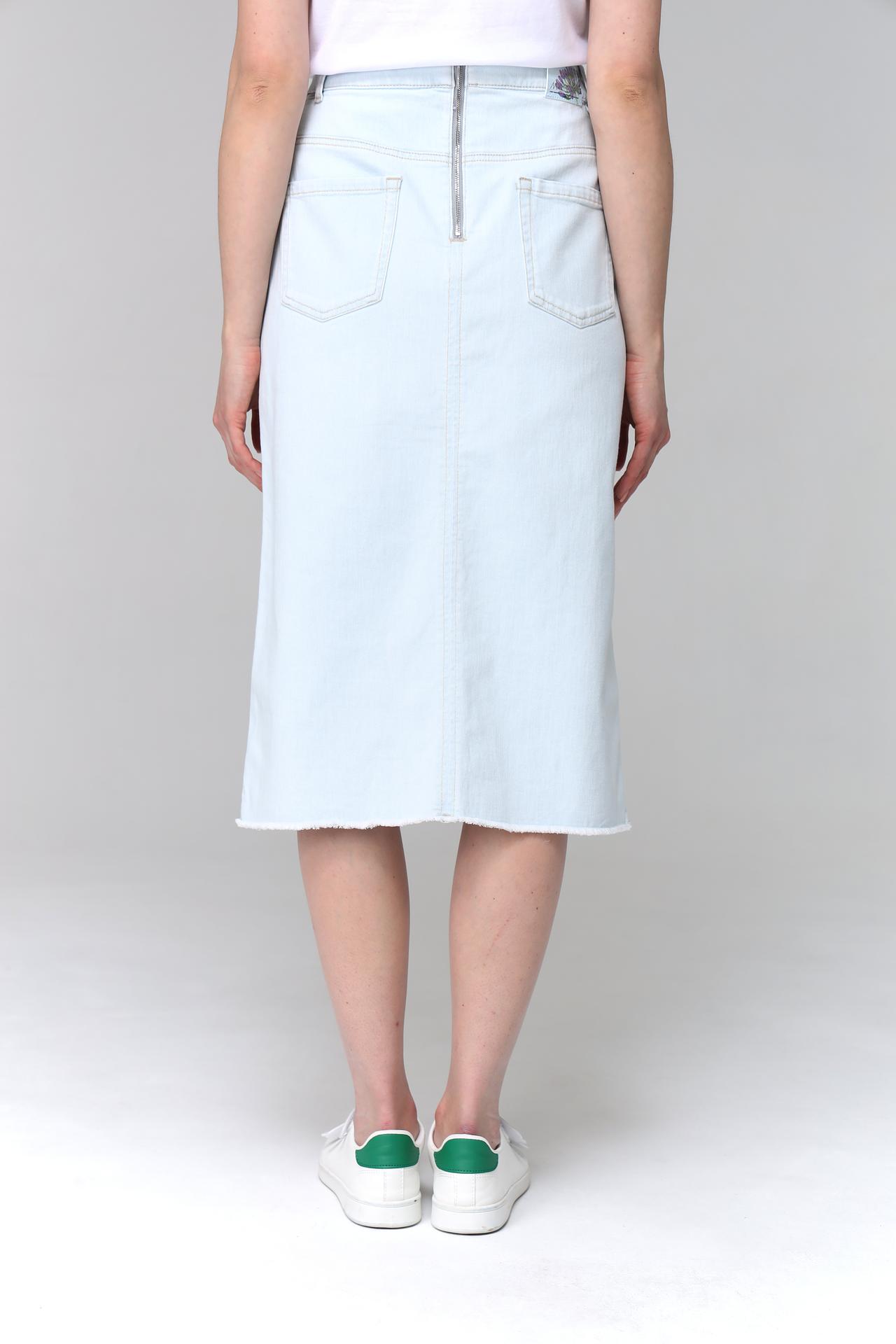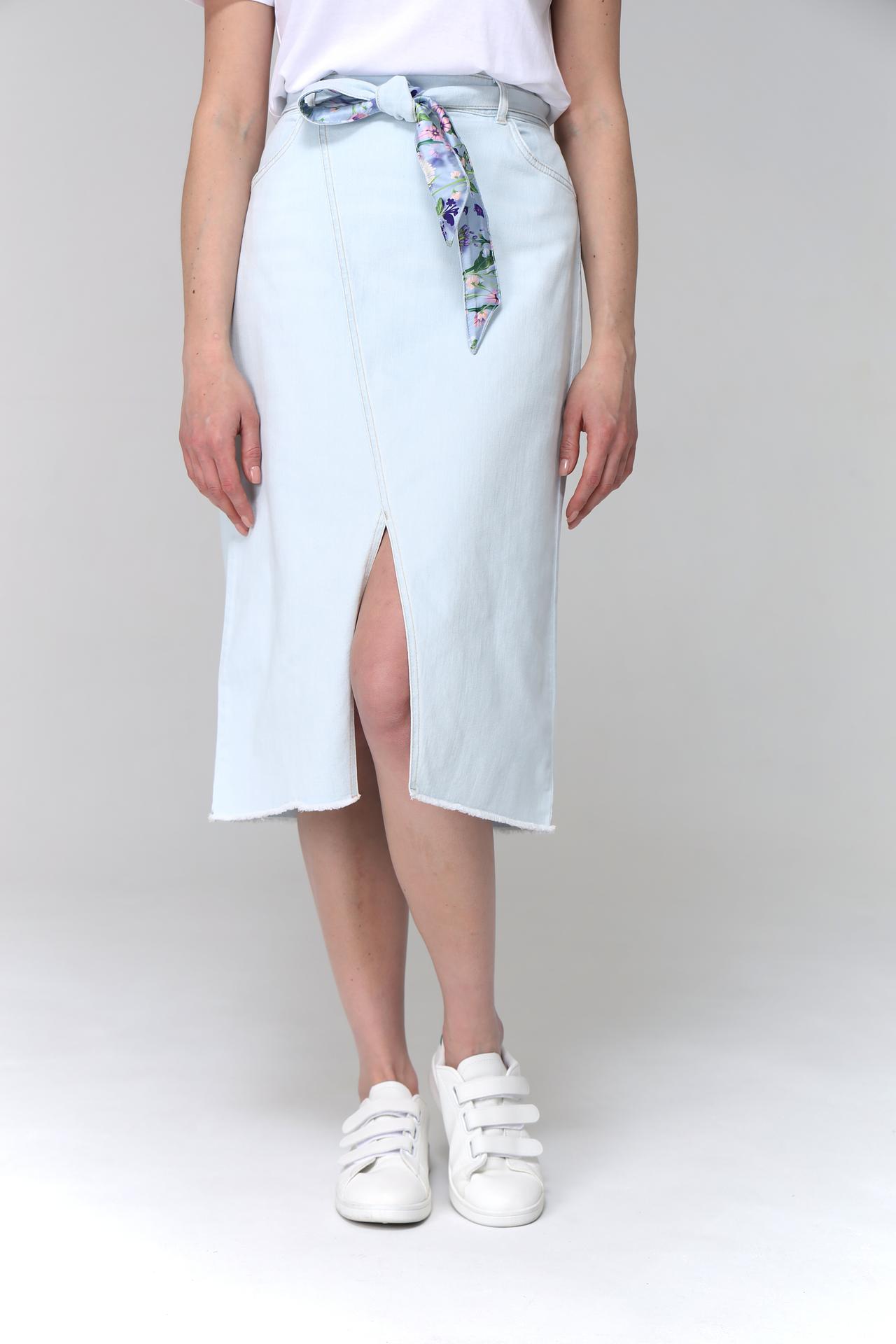 Юбка имеет прямой крой, который подчеркивает достоинства фигуры и подходит для различных типов телосложения. Светло-голубой цвет юбки придает ей свежий и летний вид, делая ее отличным выбором для повседневной носки.