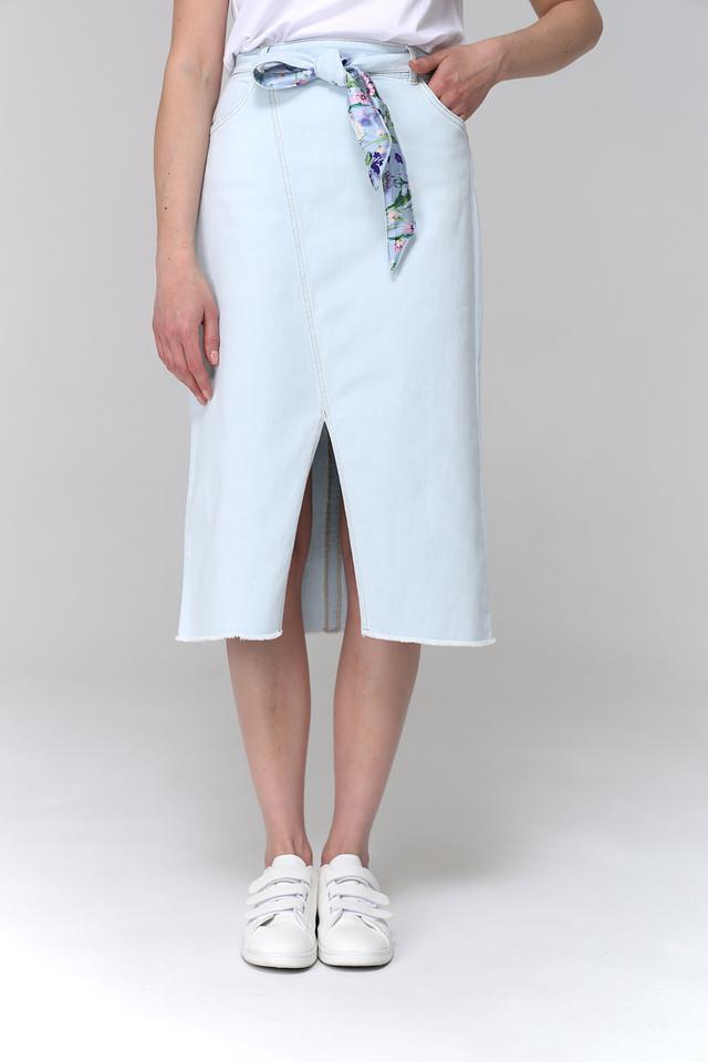 Светло-голубая джинсовая юбка Marc Cain с цветочным поясом – стильное решение для создания повседневного образа. Модель выполнена из хлопка с добавлением эластана, что обеспечивает комфорт и свободу движений. Состав: хлопок 92%, эластомультиэстер 6%, эластан 2%
