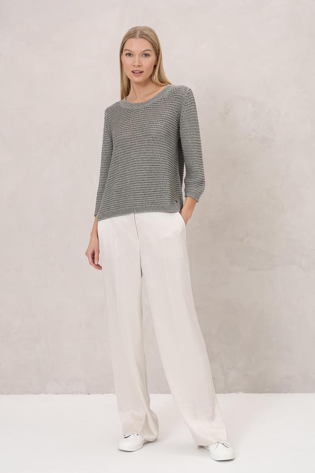 Брюки имеют прямой крой и широкие штанины, обеспечивающие свободу движений и комфорт в течение всего дня. Застежка на молнию и пуговицу, а также наличие боковых карманов добавляют функциональности.