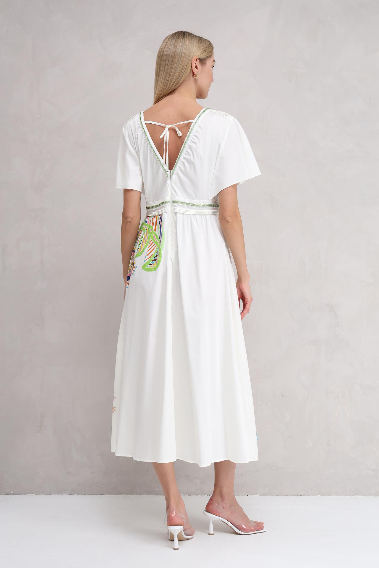 Очаровательный цветочный принт и элегантный крой midi создают неповторимый образ, идеально подходящий для повседневной жизни или особого случая. Платье станет прекрасным дополнением вашего гардероба, подчеркивая вашу индивидуальность.