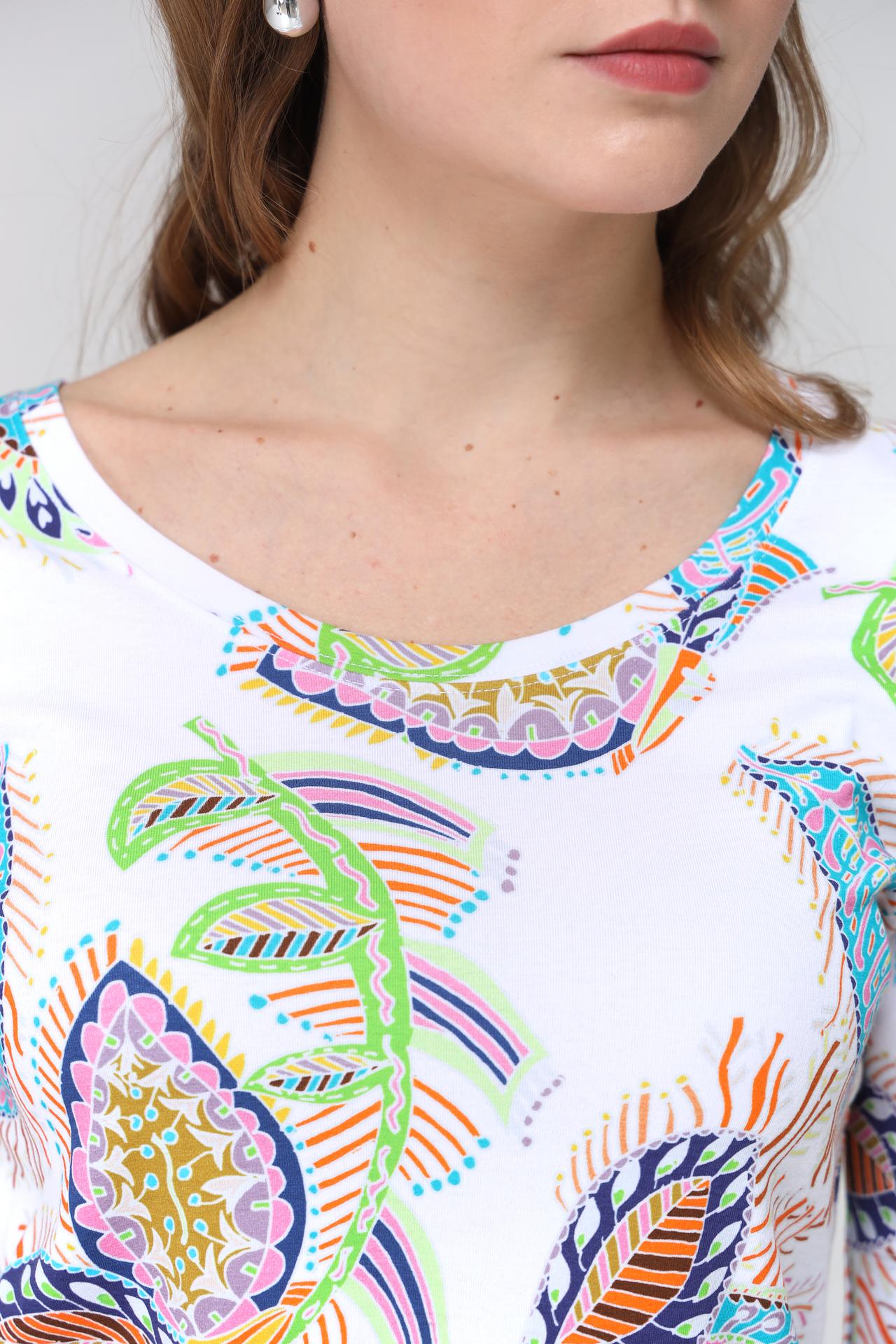 Изысканная футболка от Marc Cain станет ярким акцентом в вашем гардеробе. Благодаря высококачественному материалу (92% хлопок, 8% эластан) футболка отлично сохраняет форму, приятна к телу и обеспечивает комфорт в течение всего дня. Актуальный принт делает эту модель незаменимой для создания стильных и запоминающихся образов.