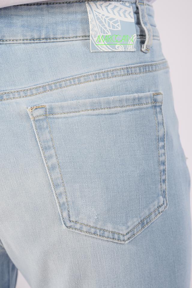 Светло-голубые джинсы Marc Cain с эффектом потертости и слегка укороченным силуэтом. Модель выполнена из качественного хлопка с добавлением эластана для комфортной посадки и свободы движений. Состав: хлопок 92%, эластомультиэстер 6%, эластан 2%