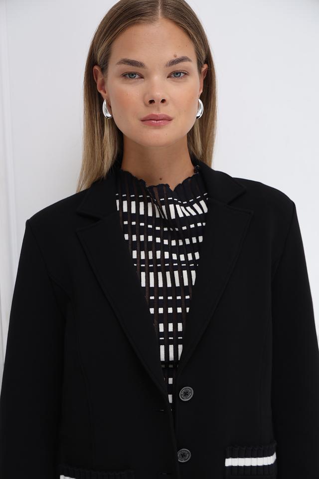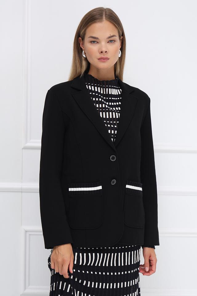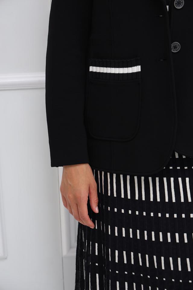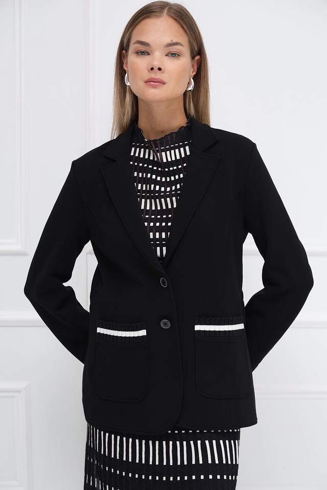 Этот стильный жакет от Marc Cain станет прекрасным дополнением к вашему гардеробу. Классический чёрный цвет делает его универсальным и подходящим для различных образов.