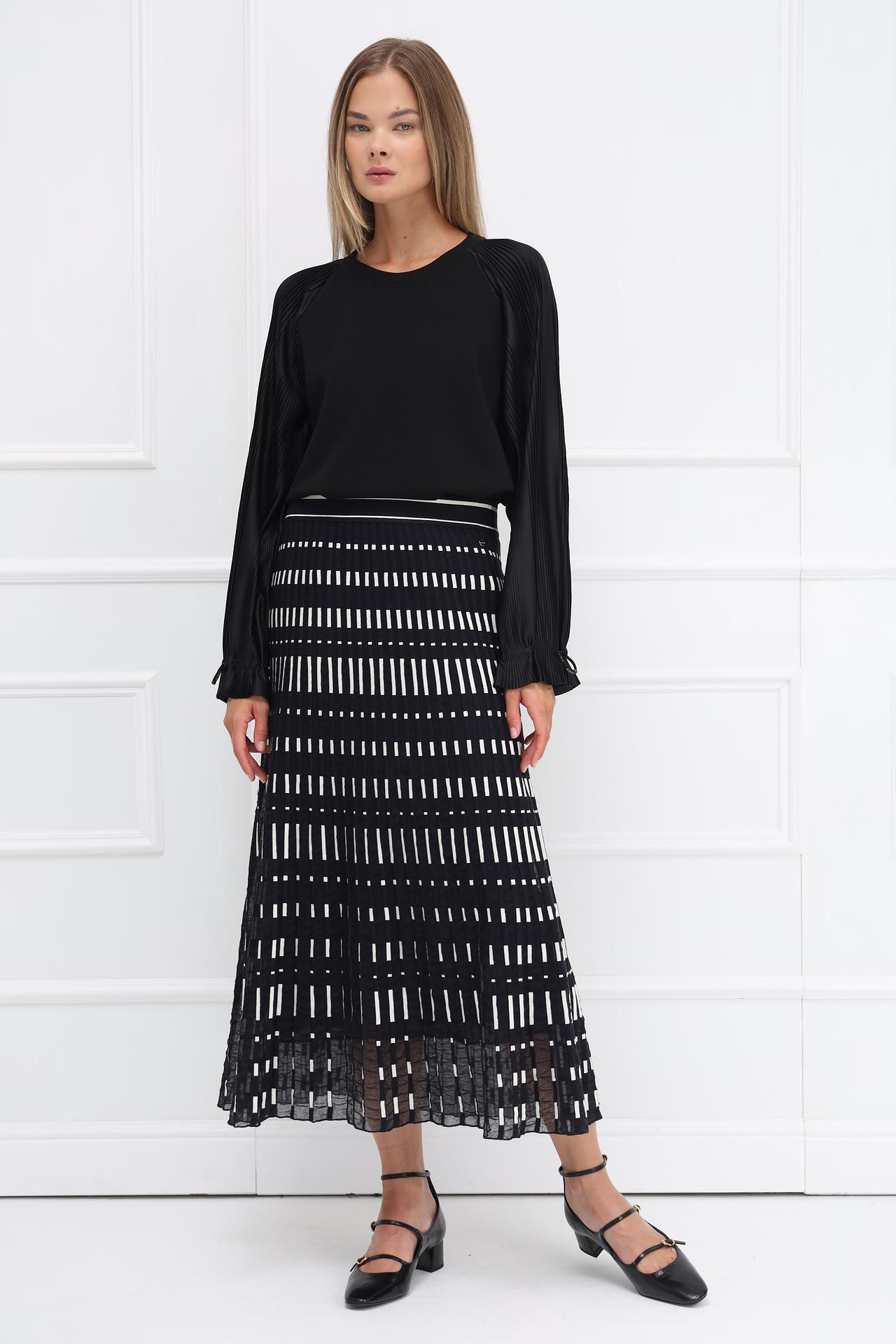 - Дизайн рукавов: Рукава с длинной плиссировкой создают эффектный и модный образ. Оригинальная фактура ткани придает изделию неповторимость.