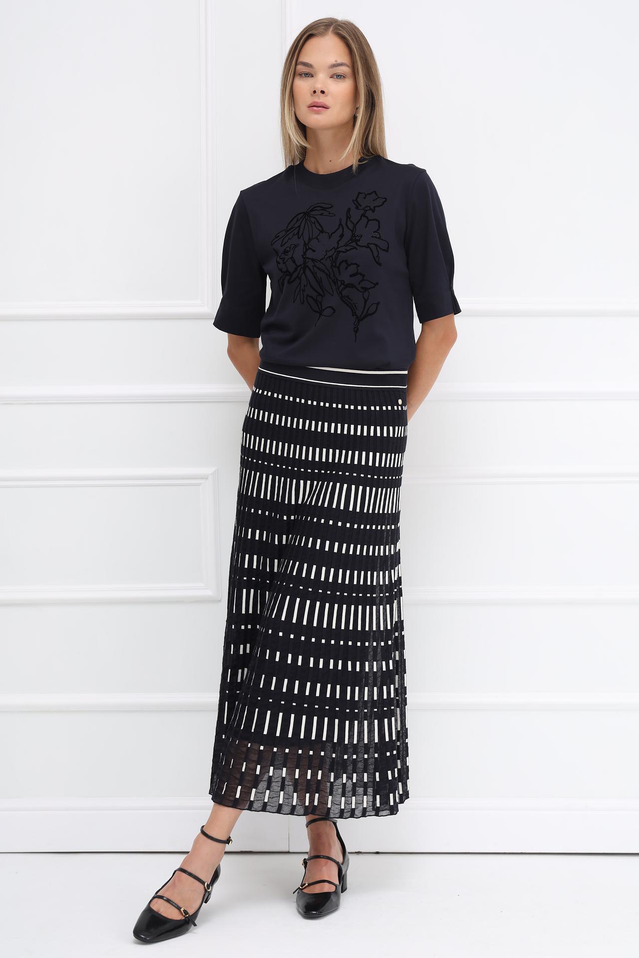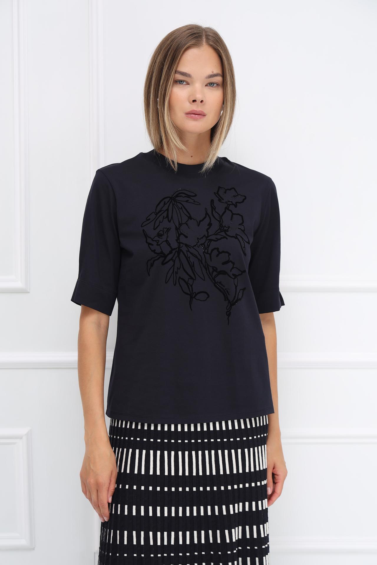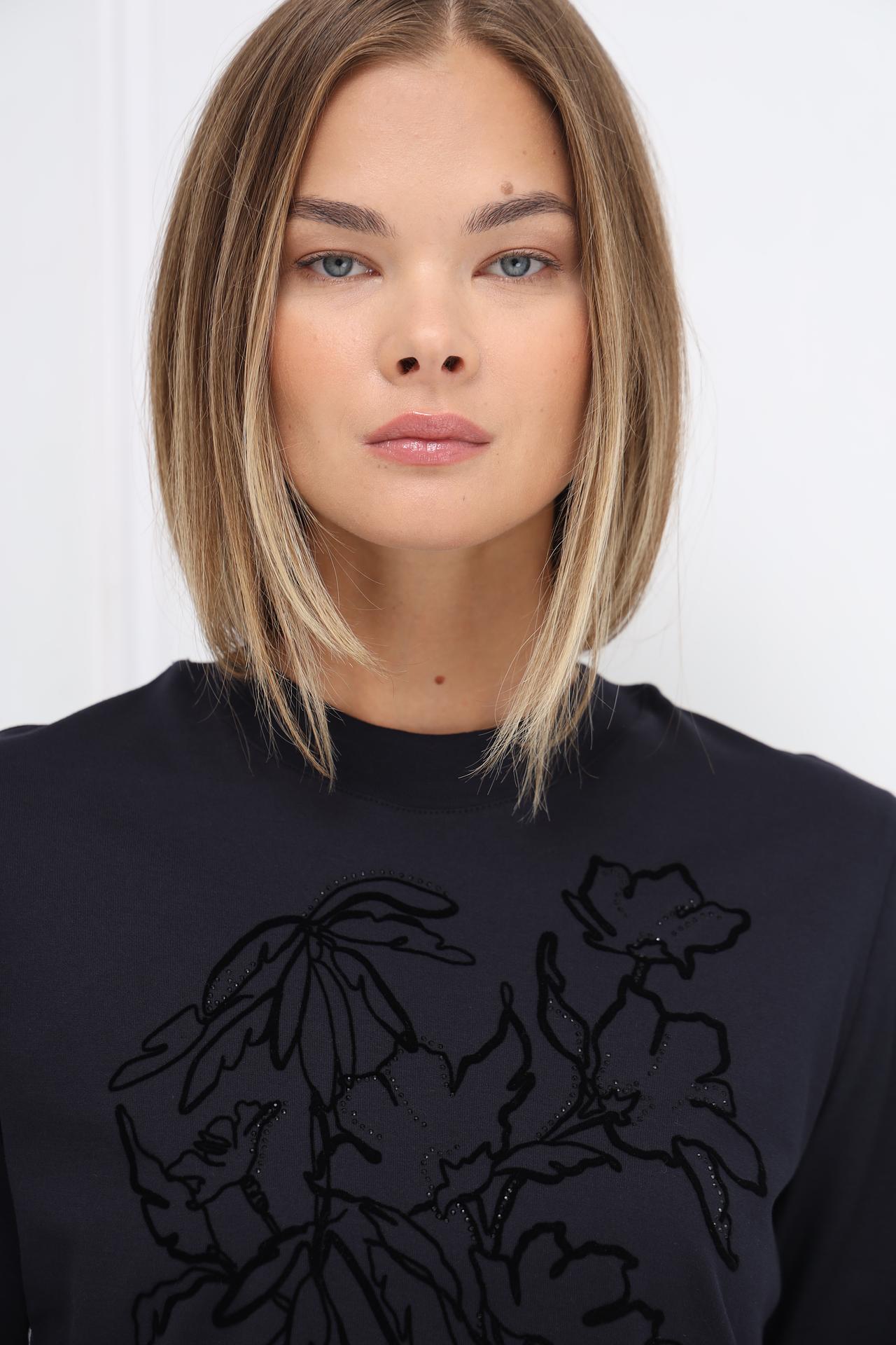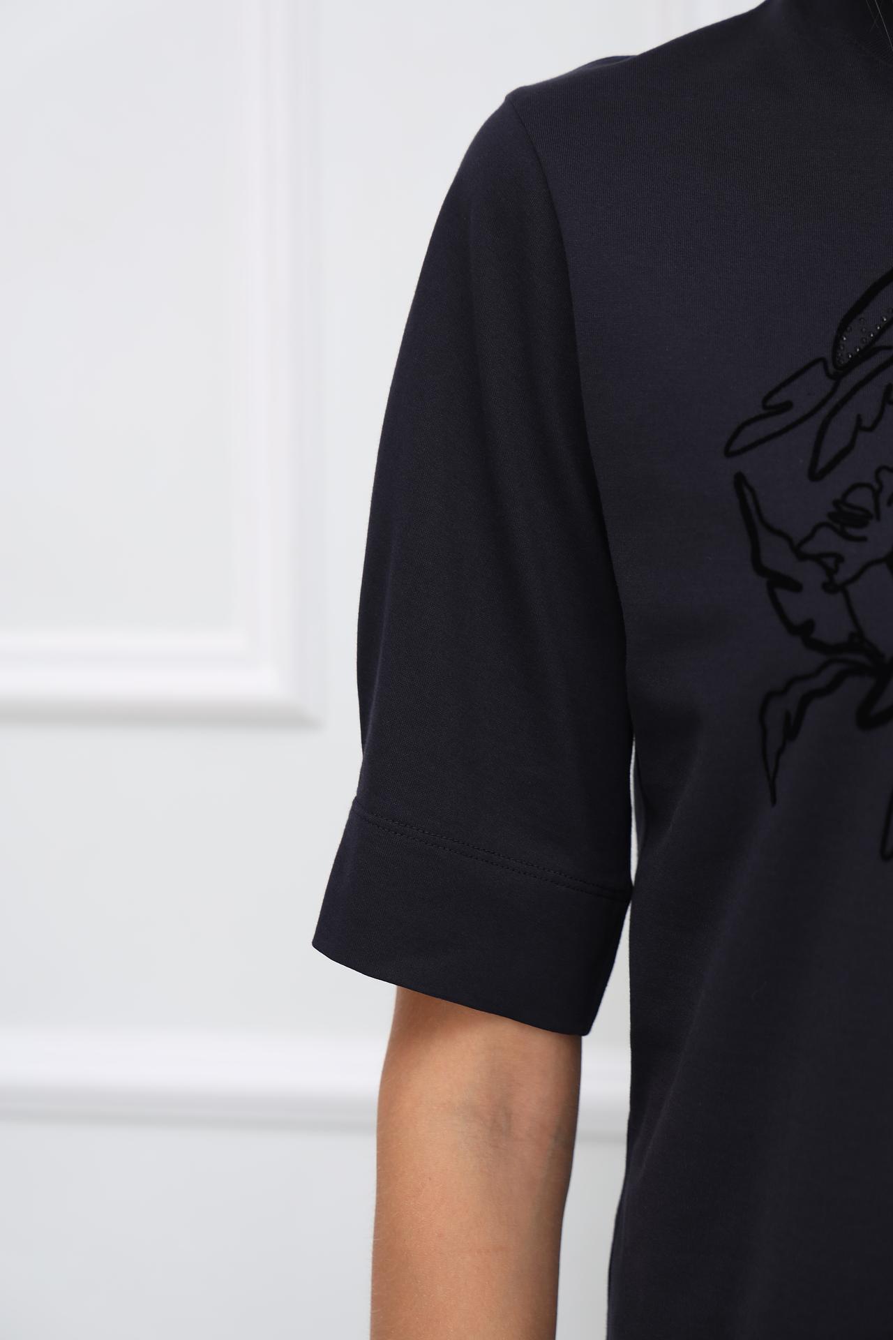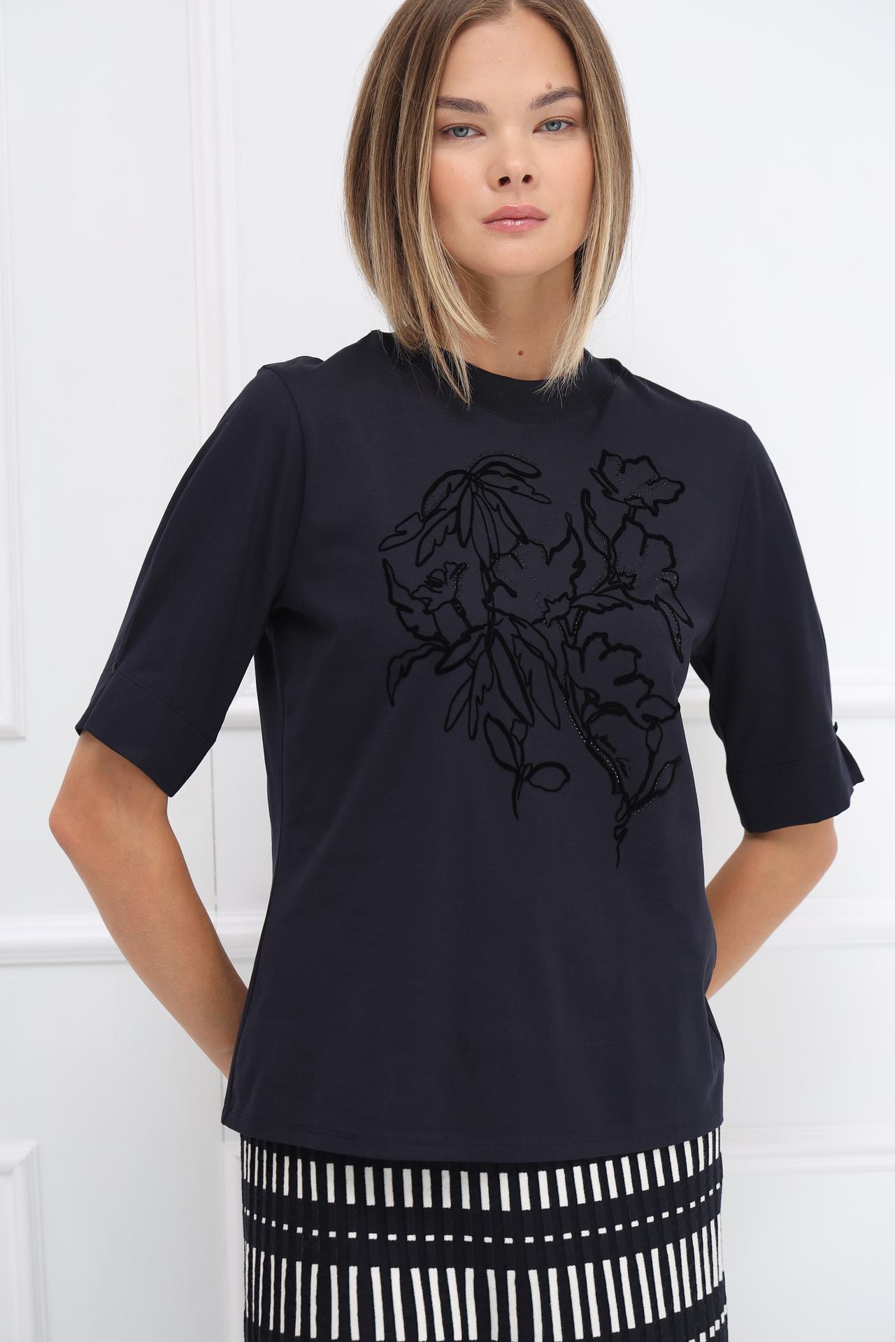 Футболка Marc Cain темно-синяя с цветочным принтом
