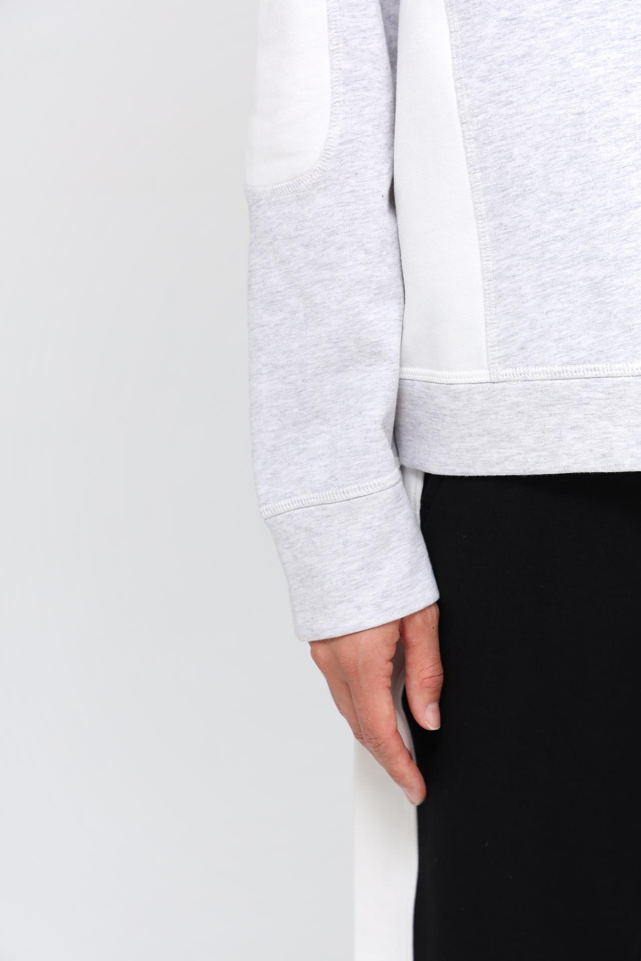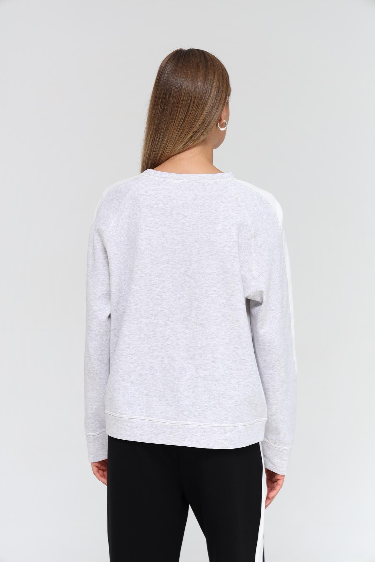 - Дизайн и крой: Модель имеет свободный силуэт, круглый вырез и контрастные белые вставки, что обеспечивает стильный внешний вид и удобство.