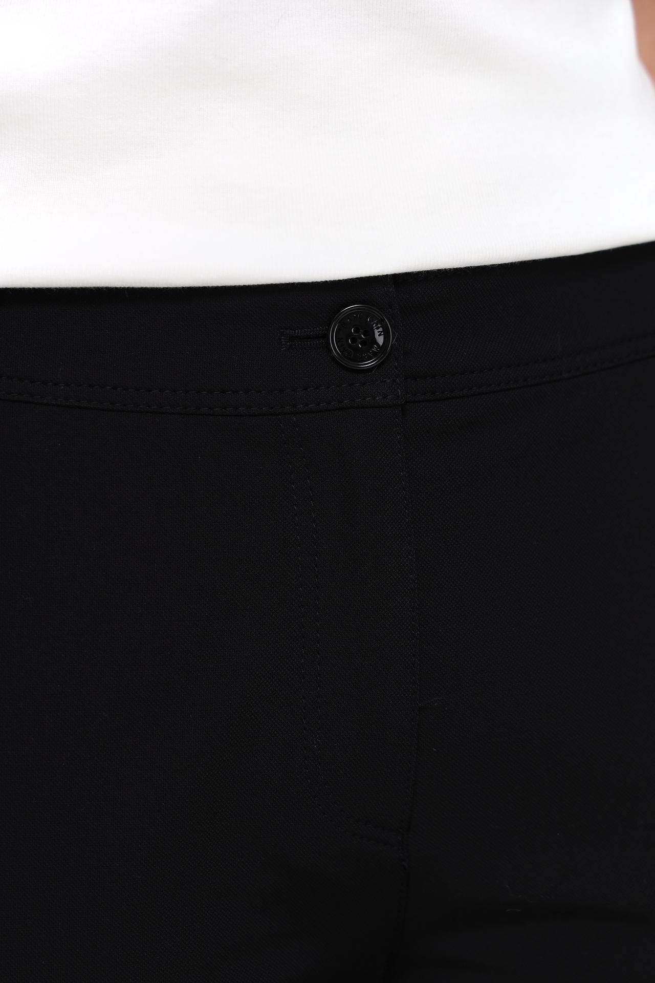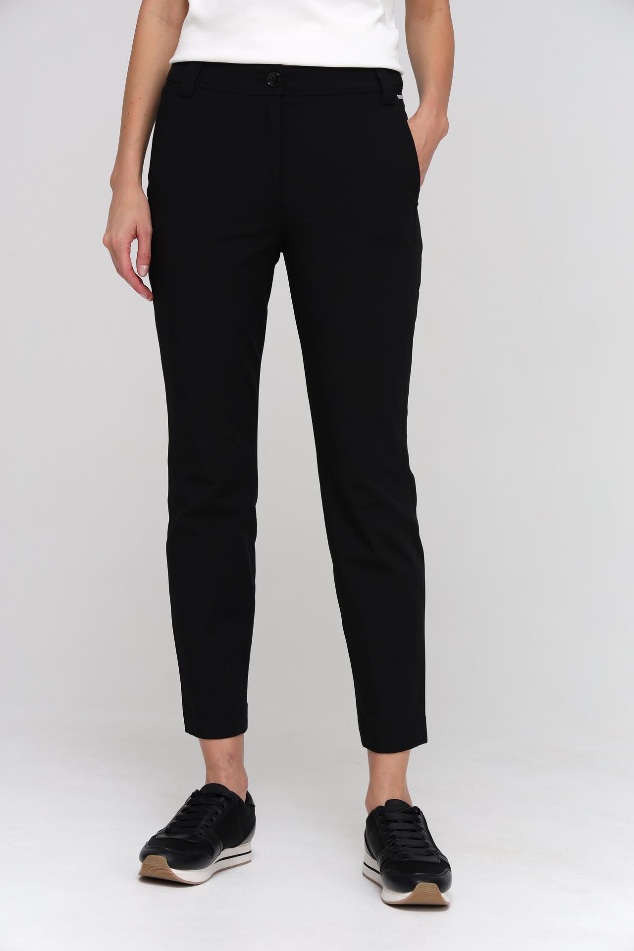 Модель выполнена из высококачественной ткани, сочетающей хлопок, полиамид и эластан, что обеспечивает превосходную посадку и долговечность. Брюки прекрасно садятся по фигуре, не сковывая движений, и сохраняют первоначальный вид даже после многочисленных стирок. Универсальный черный цвет позволяет легко сочетать их с различными элементами гардероба, от классических блуз до повседневных футболок.