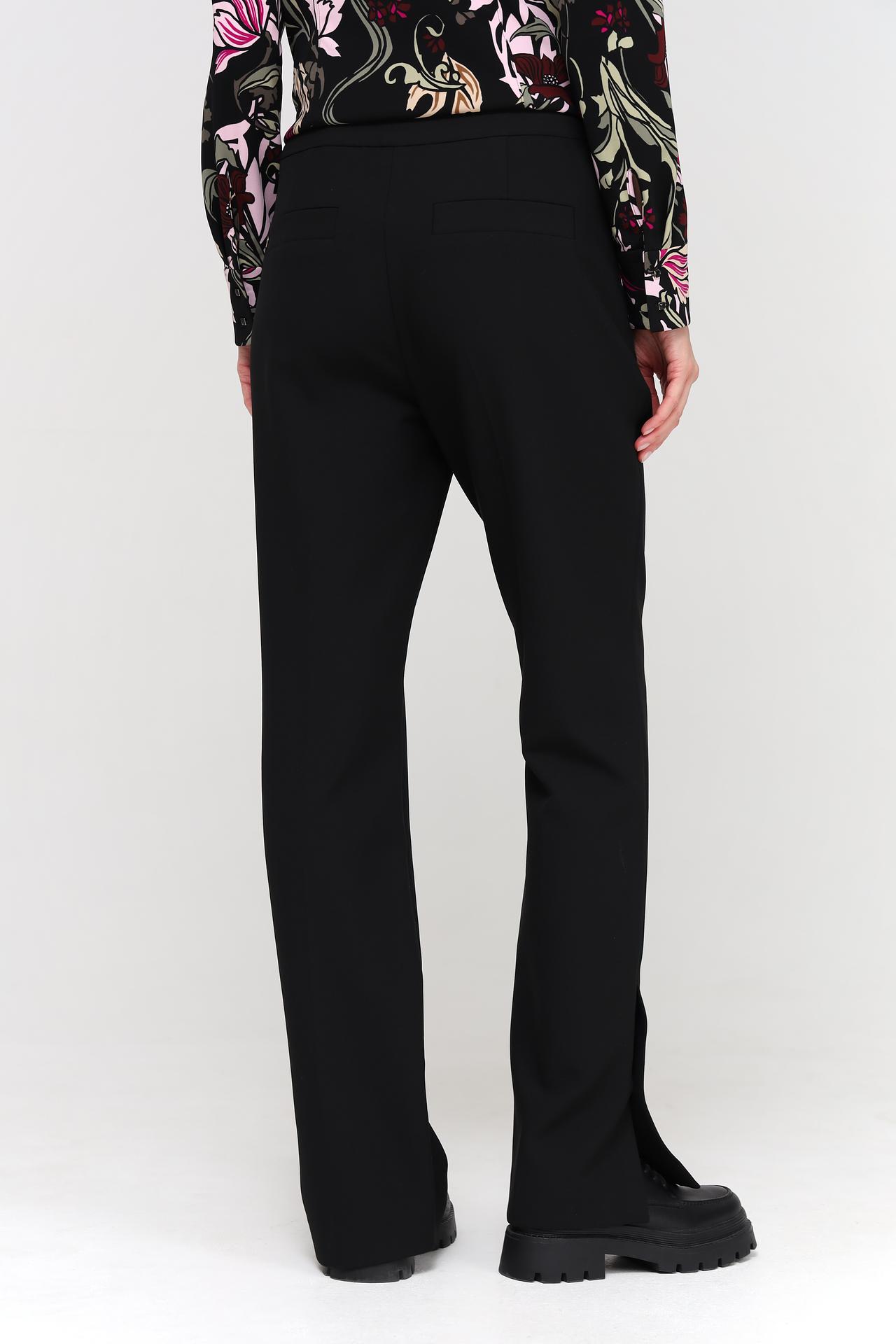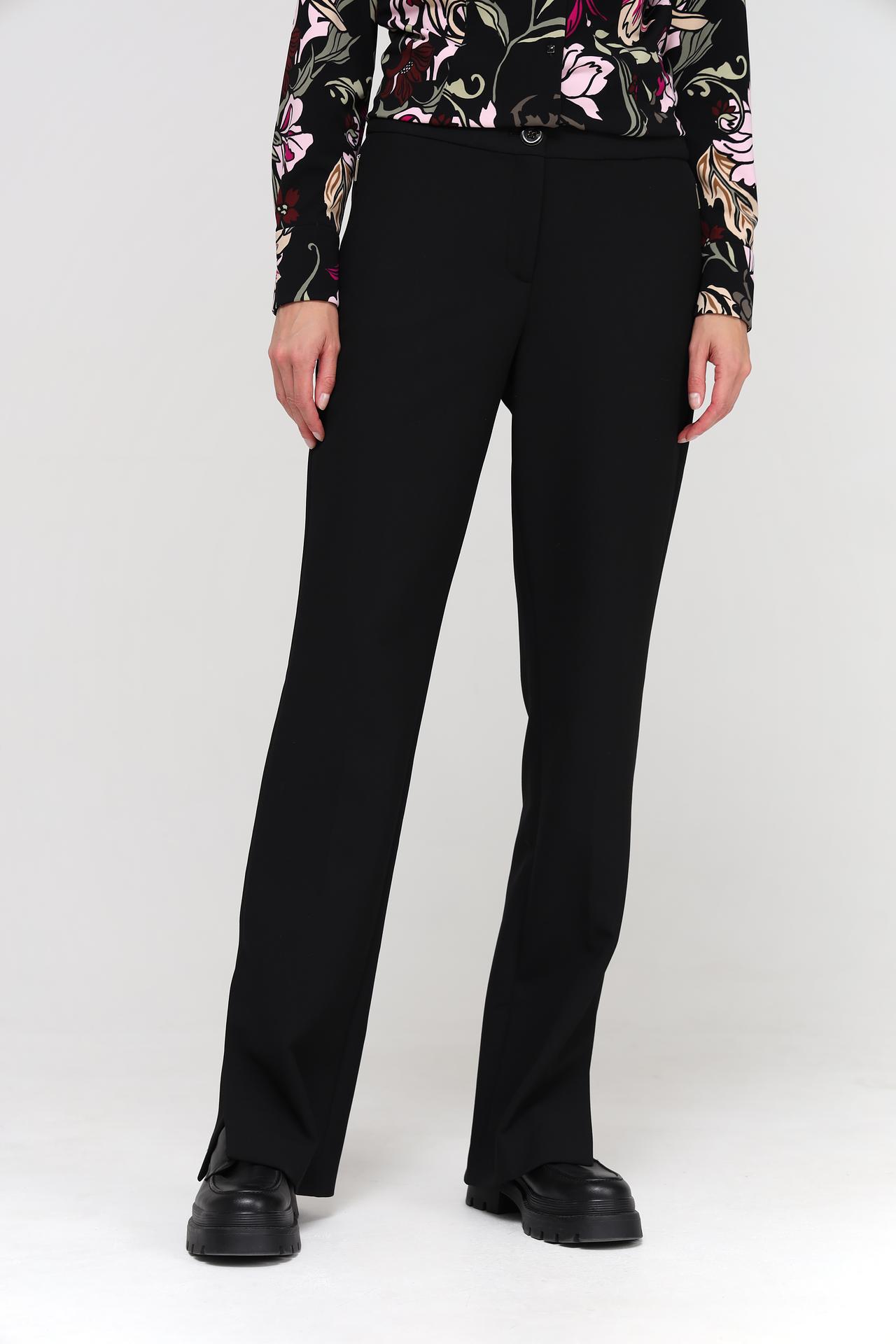 - Крой: Прямой крой и современный разрез по низу брючин визуально удлиняют ноги и добавляют образу динамичности.