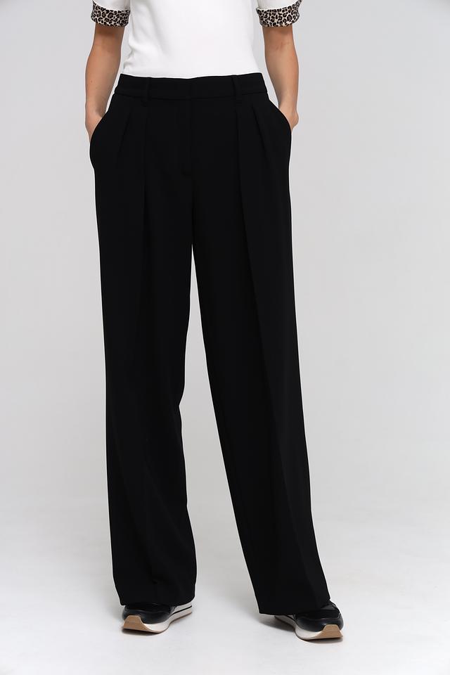 Представляем элегантные брюки классического кроя от известного бренда Marc Cain. Эта модель выполнена в насыщенном чёрном цвете, который легко сочетается с различными элементами гардероба.