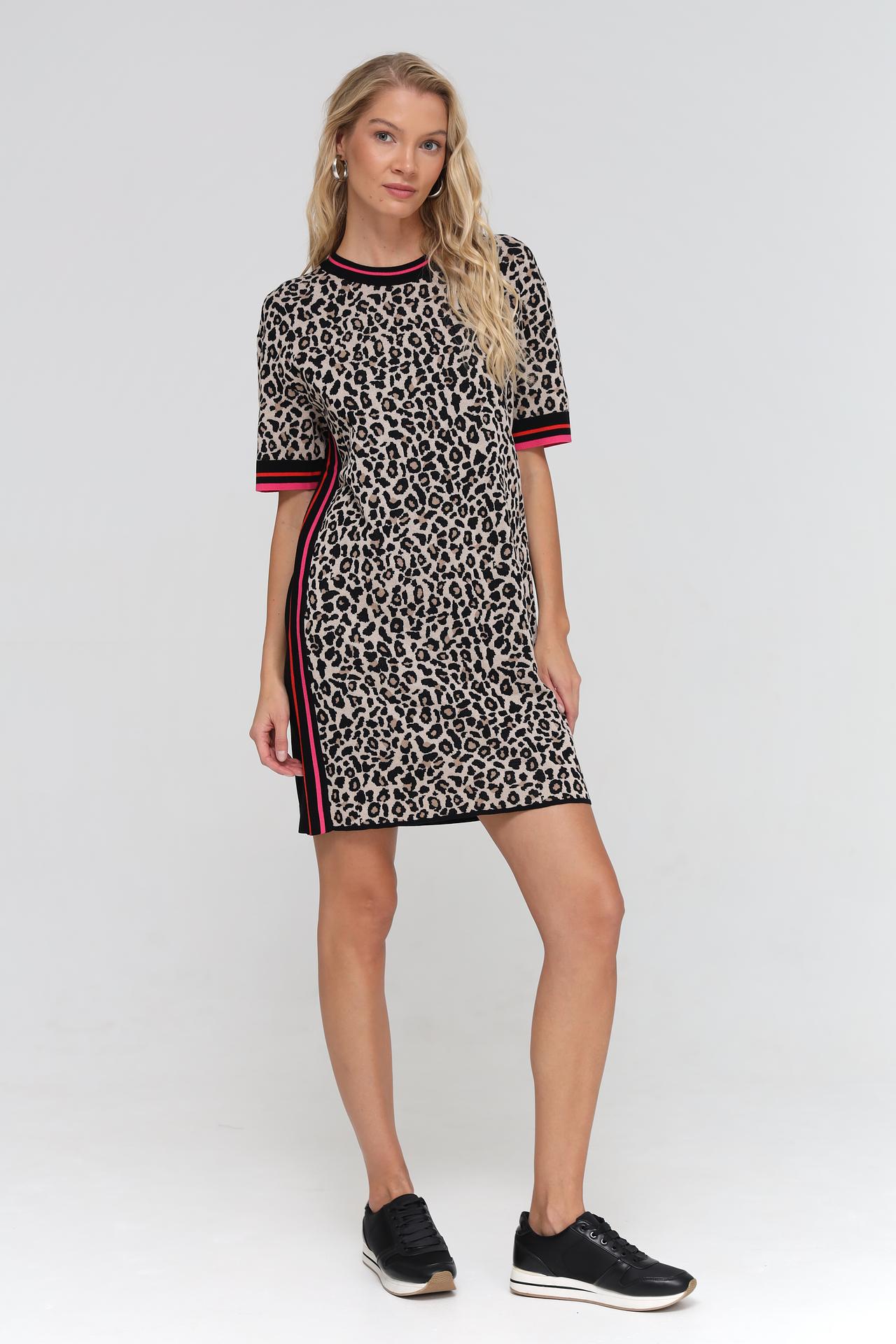 Эффектное трикотажное платье от Marc Cain с актуальным леопардовым принтом станет ярким акцентом в вашем гардеробе. Это стильное платье сочетает в себе комфорт и модный дизайн, идеально подходит для создания запоминающихся образов. В составе ткани преобладает вискоза, что обеспечивает приятные тактильные ощущения и комфорт при носке.