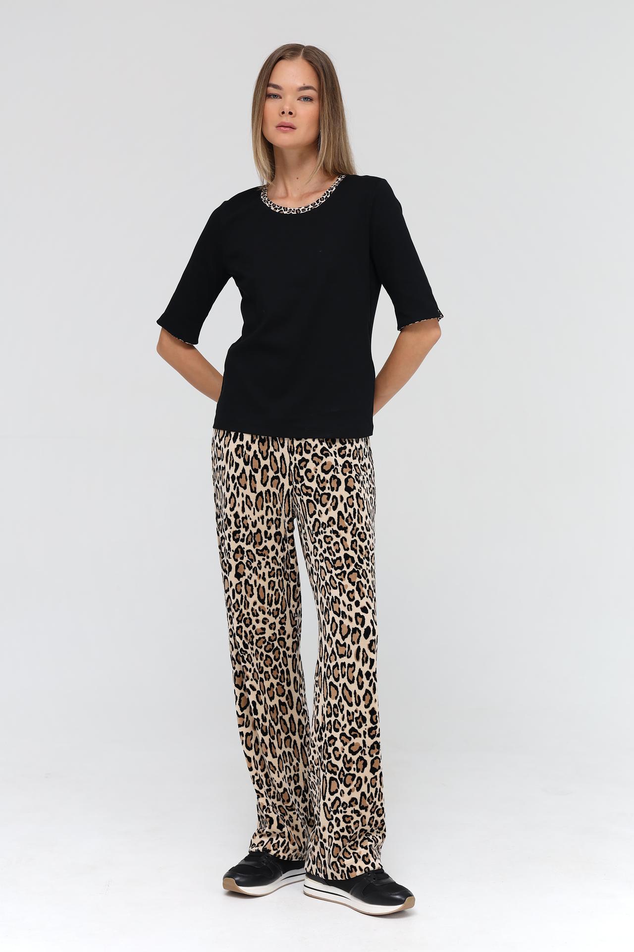 - Принт: Эффектный леопардовый принт добавляет образу выразительности и шика.