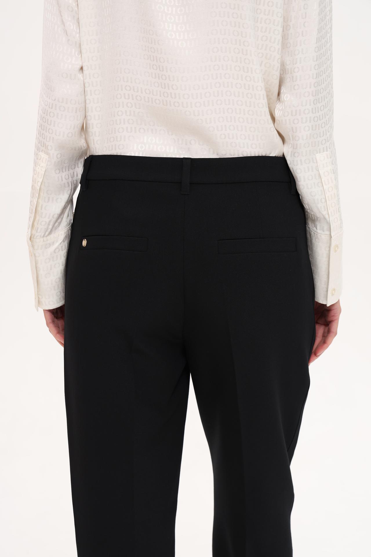 - Дизайн и крой: Брюки имеют современный укороченный силуэт и идеально ровные стрелки, которые визуально удлиняют ноги. Боковые карманы с декоративной молнией добавляют изюминку, а задние прорезные карманы подчеркивают функциональность.