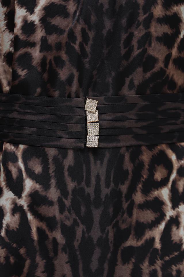 Талия подчеркнута тонким поясом с металлической пряжкой. Платье идеально подойдет для создания как повседневных, так и вечерних образов. Состав: 100% полиэстер.