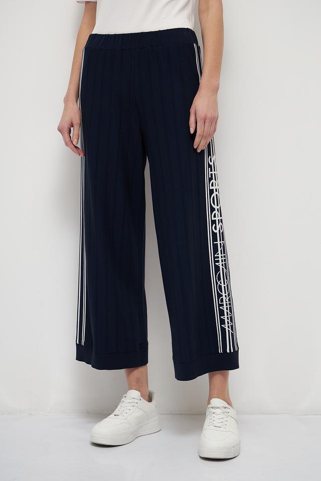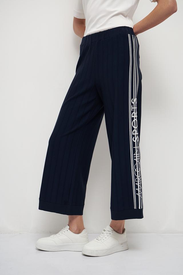 Спортивные брюки Marc Cain темно-синего цвета, выполнены из мягкой вискозы с полиэстером. Модель с эластичным поясом и боковыми полосами. Состав: 70% вискоза, 30% полиэстер. Состав: вискоза 70%, полиэстер 30%