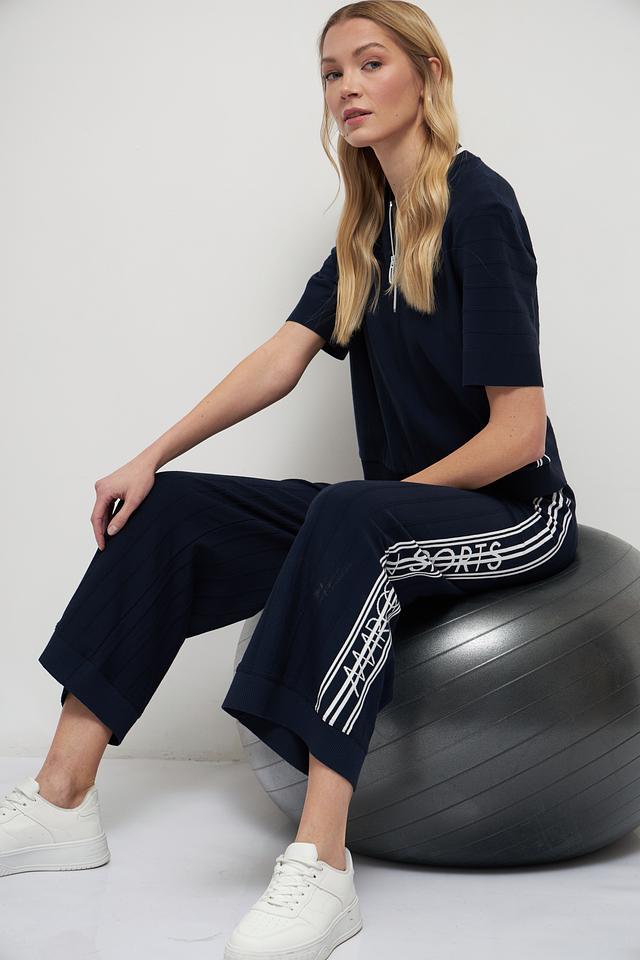 Представляем стильные спортивные брюки от бренда Marc Cain. Эта модель выполнена в насыщенном темно-синем цвете, который легко сочетается с различными элементами гардероба.