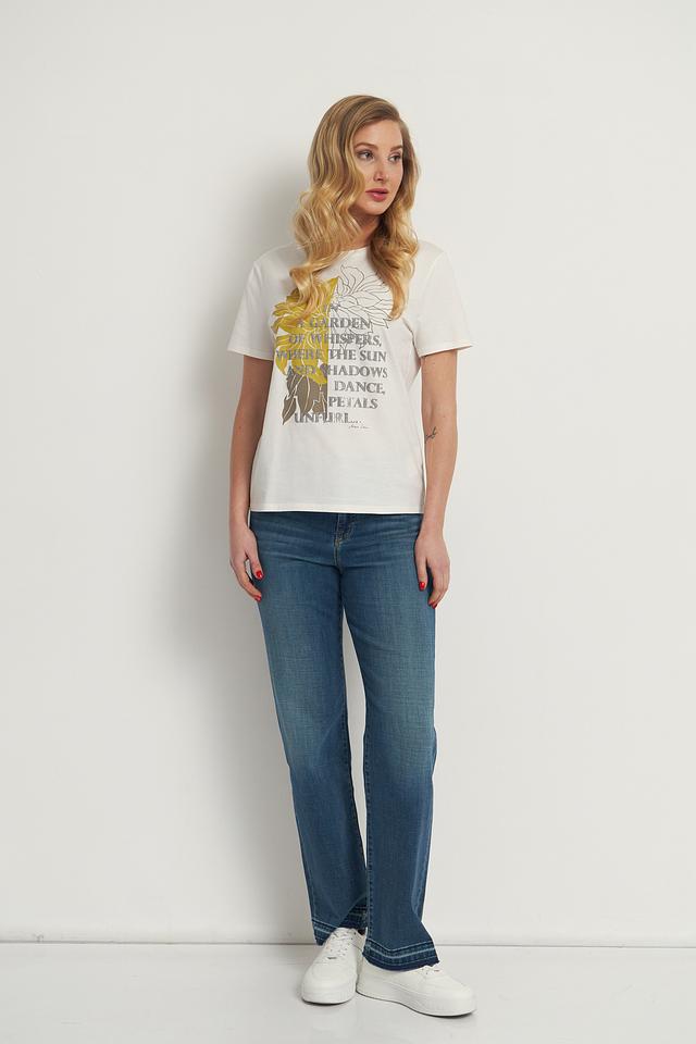 Джинсы имеют прямой крой, который обеспечивает свободу движений и комфорт в течение всего дня. Эффект потертостей придает им непринужденный и современный вид. Застежка на молнию и пуговицу, а также пять карманов – два спереди и три сзади – обеспечивают функциональность и удобство.
