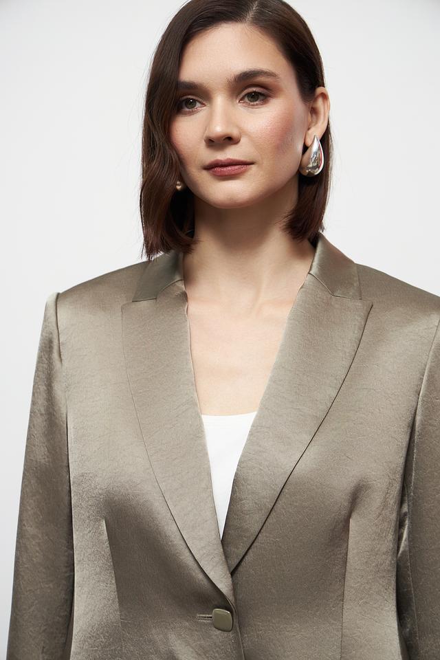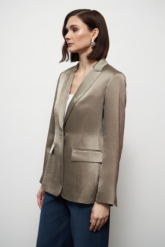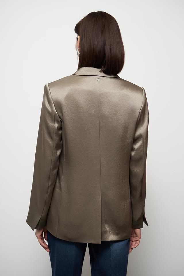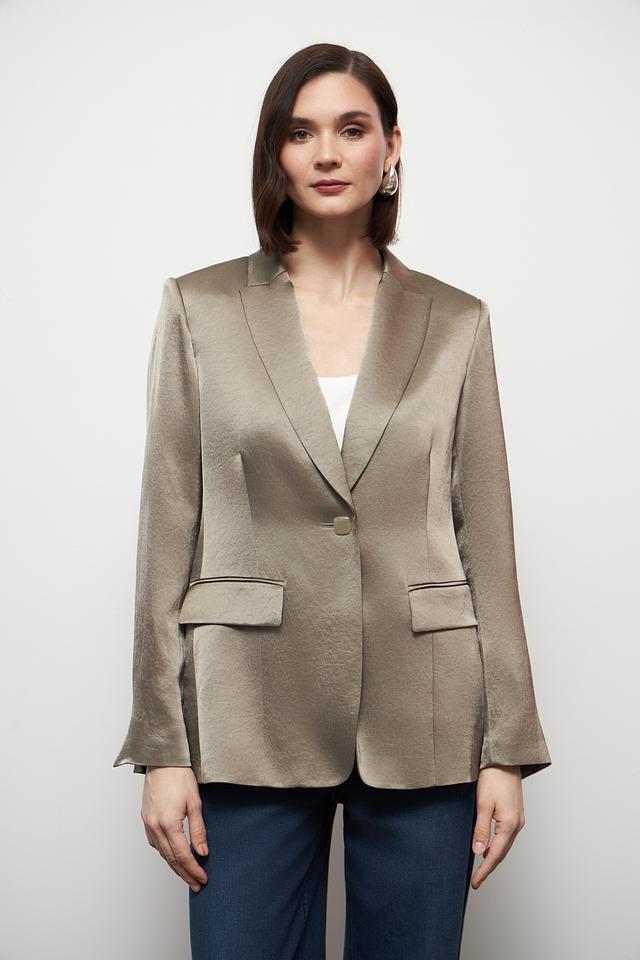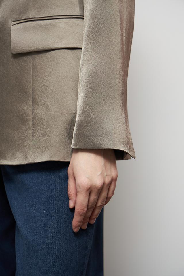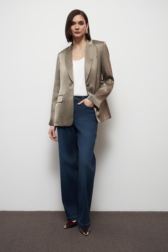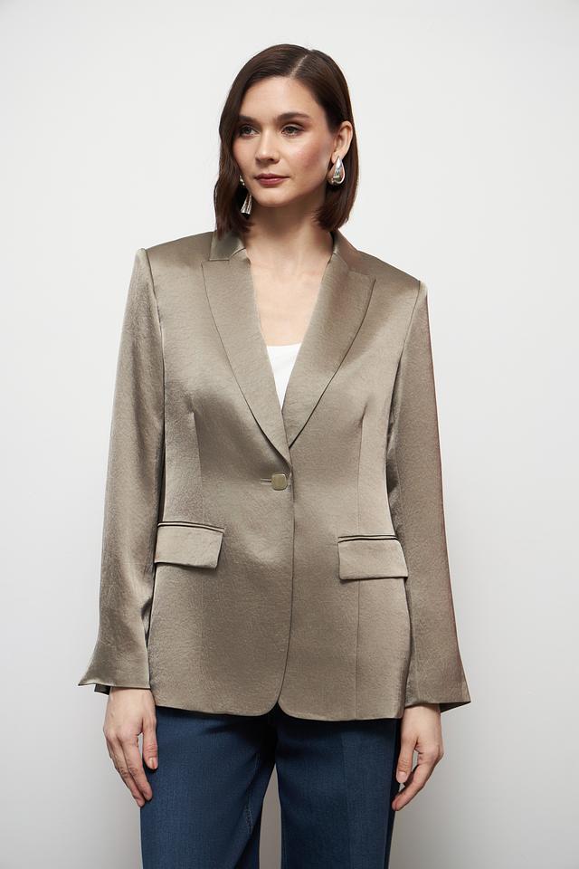 Бежевый жакет Marc Cain из атласного триацетата и полиэстера. Классический крой с лацканами и застежкой на пуговицу. Идеальный выбор для создания элегантного образа. Состав: триацетат 86%, полиэстер 14%