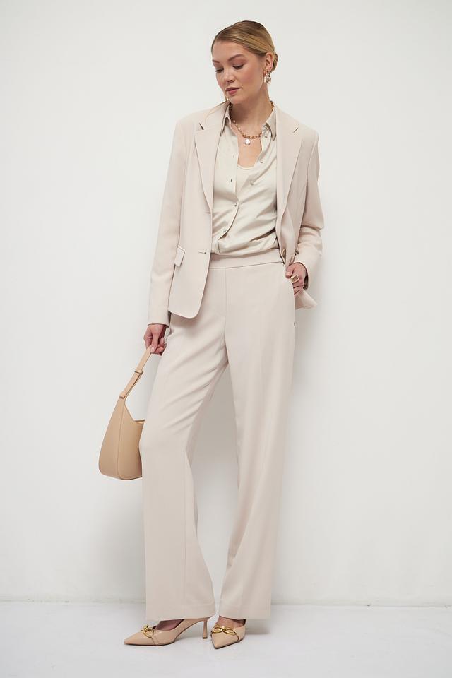 Представляем элегантные брюки классического кроя от бренда Marc Cain. Эта модель выполнена в нежном бежевом цвете, который легко сочетается с различными элементами гардероба.