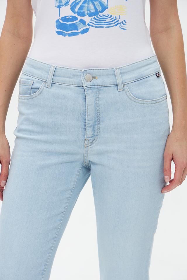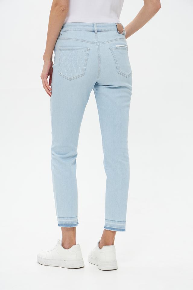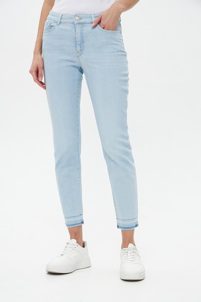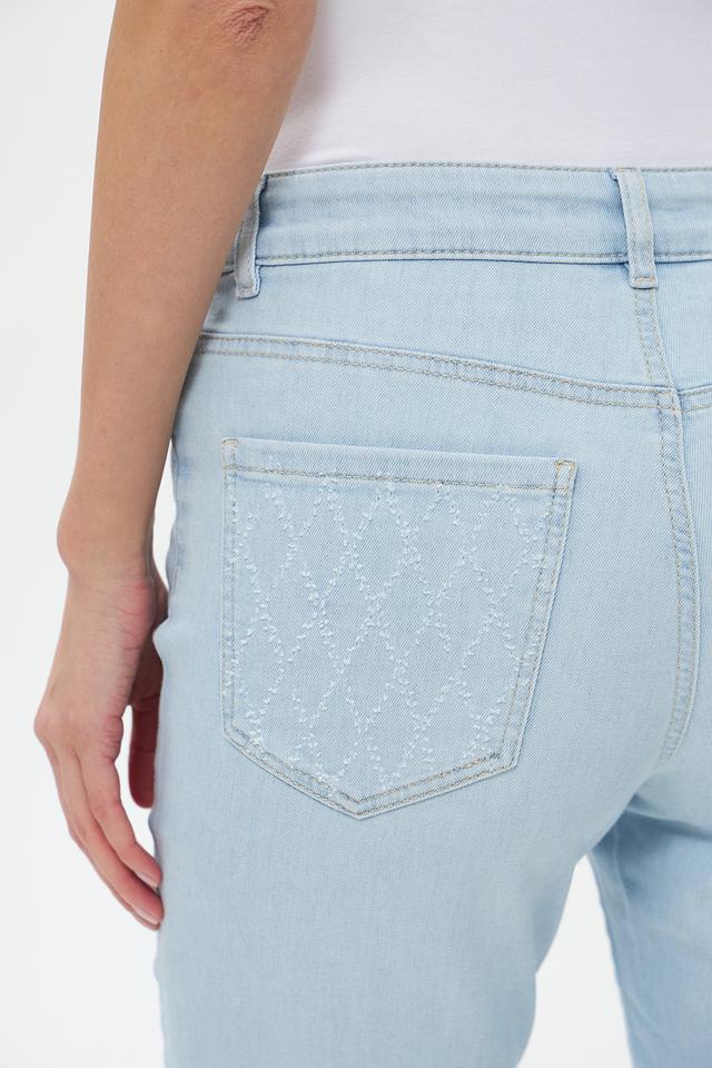 Светло-голубые джинсы Marc Cain с зауженным к низу кроем и небольшим декоративным элементом на заднем кармане. Модель выполнена из качественного хлопка с добавлением эластана для комфортной посадки и свободы движений. Состав: хлопок 92%, эластомультиэстер 6%, эластан 2%