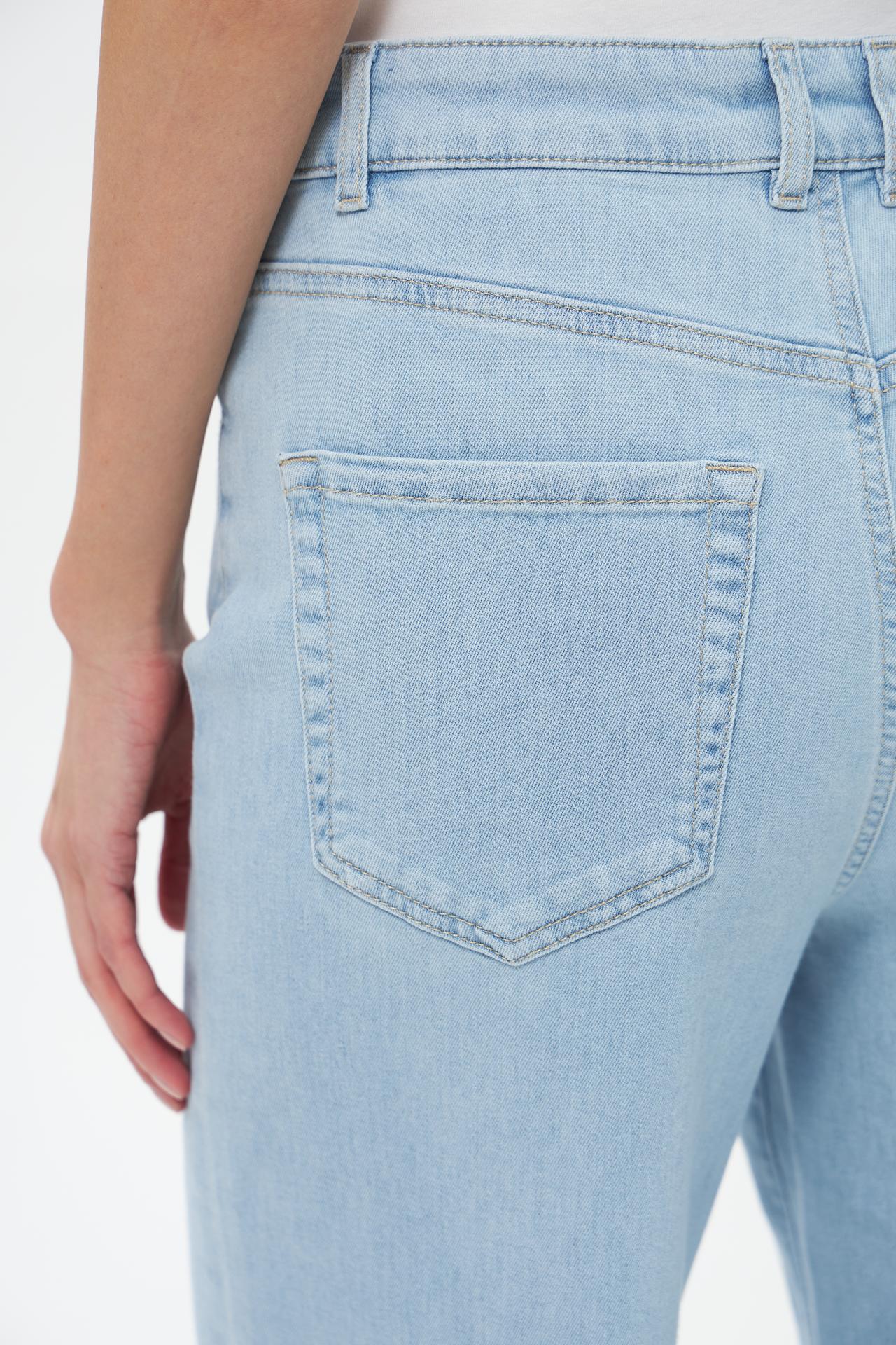 - Комфортная высокая посадка. Джинсы с высокой талией обеспечивают оптимальную поддержку и комфорт в течение всего дня, визуально удлиняя силуэт.
