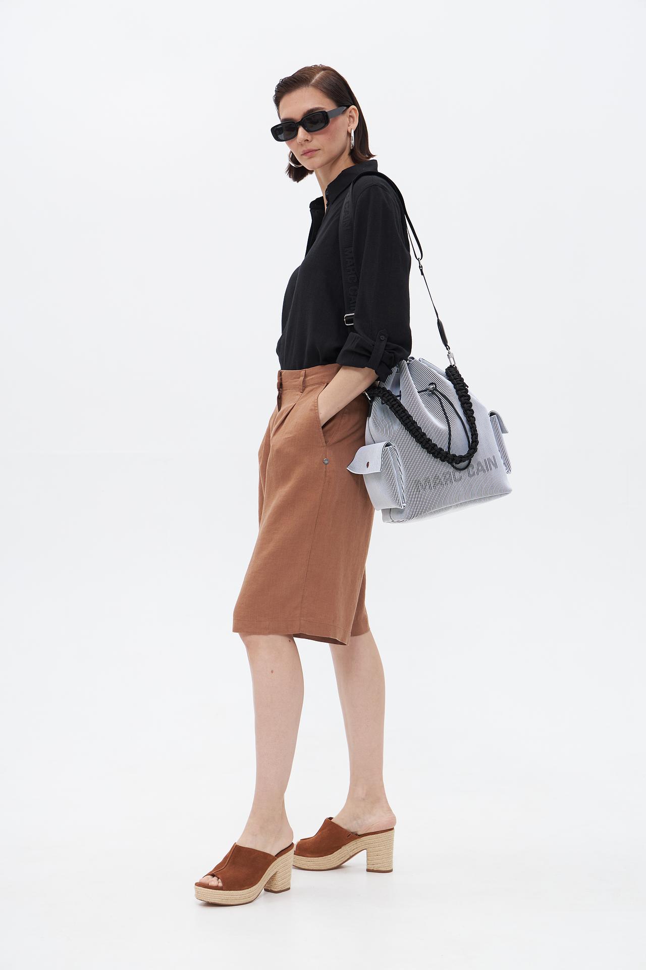 - Универсальность: Сумка оснащена двумя видами ручек — плетеными короткими ручками и длинным регулируемым ремнем, что позволяет носить ее как в руке, так и на плече или через плечо.