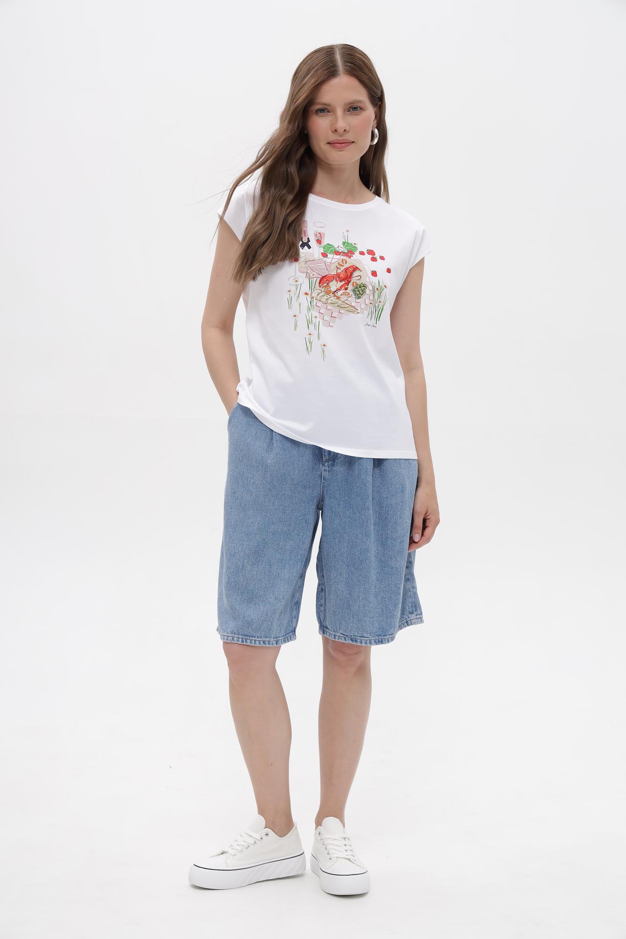 - Универсальный дизайн: Классический крой и белый цвет позволяют легко сочетать футболку с любой одеждой и аксессуарами.