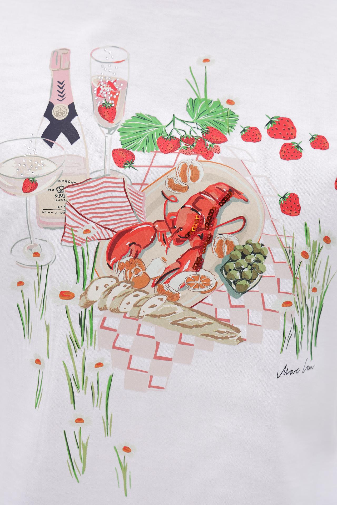 Элегантная белая футболка от Marc Cain – воплощение комфорта и стиля в вашем гардеробе. Изготовленная из 100% высококачественного хлопка, она обеспечивает мягкость и приятное ощущение на коже в течение всего дня. Идеальный выбор для создания как повседневных, так и более изысканных образов.