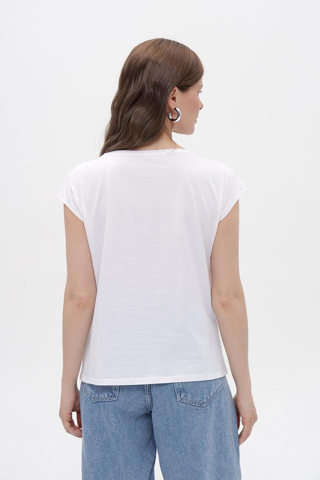 Эта белая футболка от Marc Cain станет отличным дополнением к вашему летнему гардеробу. Изготовленная из 100% хлопка, она обеспечивает комфорт и воздухопроницаемость в жаркую погоду.
