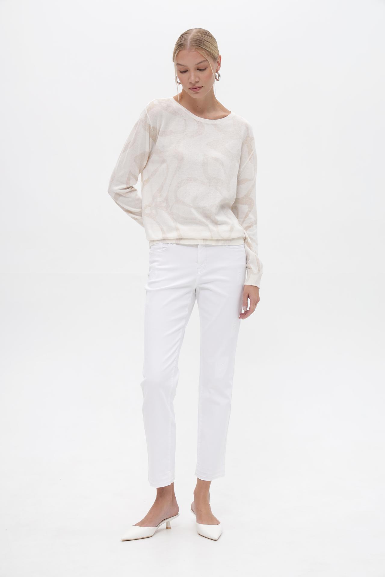 Созданные для максимального комфорта и долговечности, джинсы Marc Cain отличаются продуманным составом. Использование 70% переработанного хлопка подчеркивает экологичность производства, а добавление 2% эластана и 8% эластомультиэстера обеспечивает превосходную эластичность, идеальную посадку по фигуре и свободу движений. Высококачественный деним белого цвета сохраняет свою форму и насыщенность даже после многократных стирок.