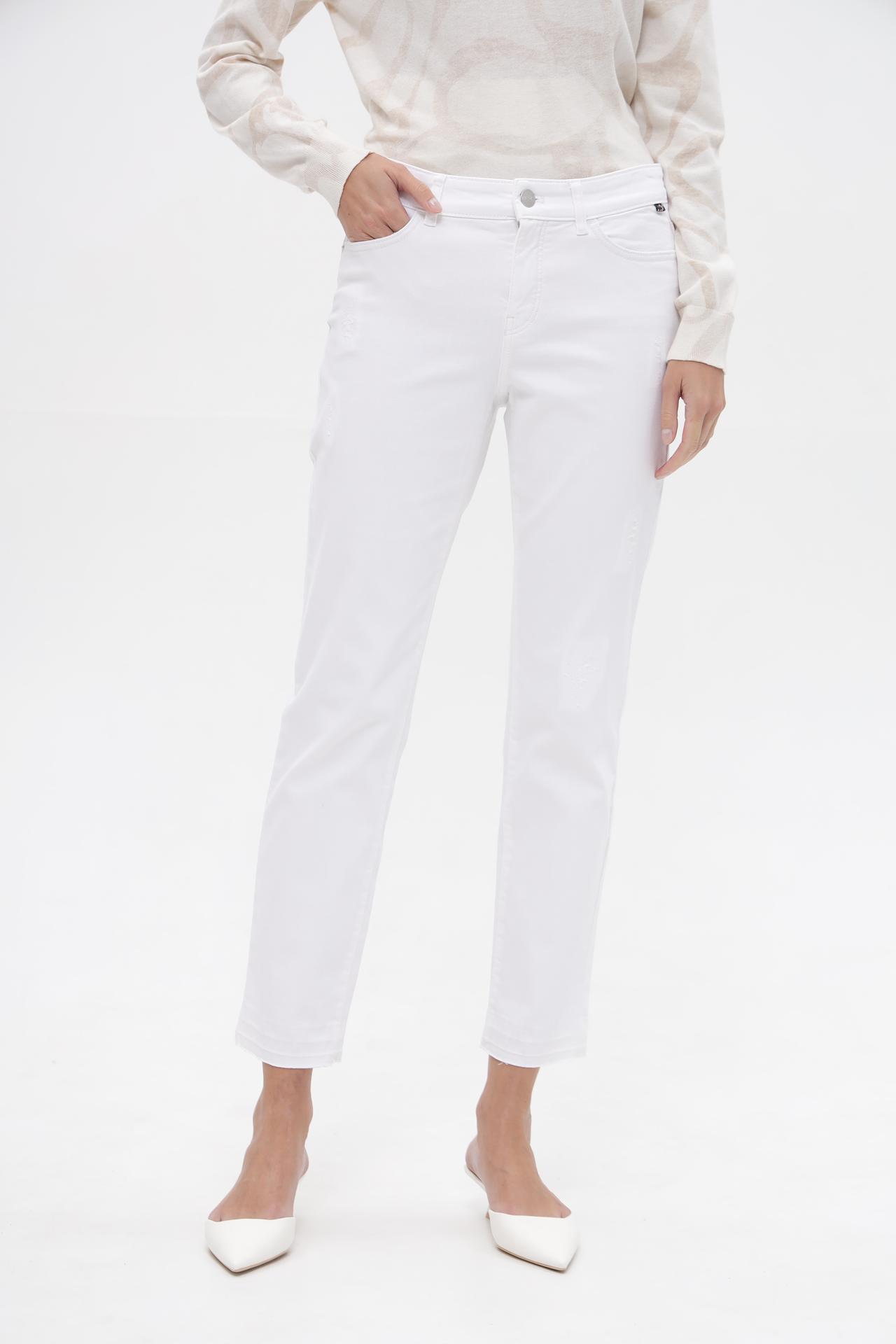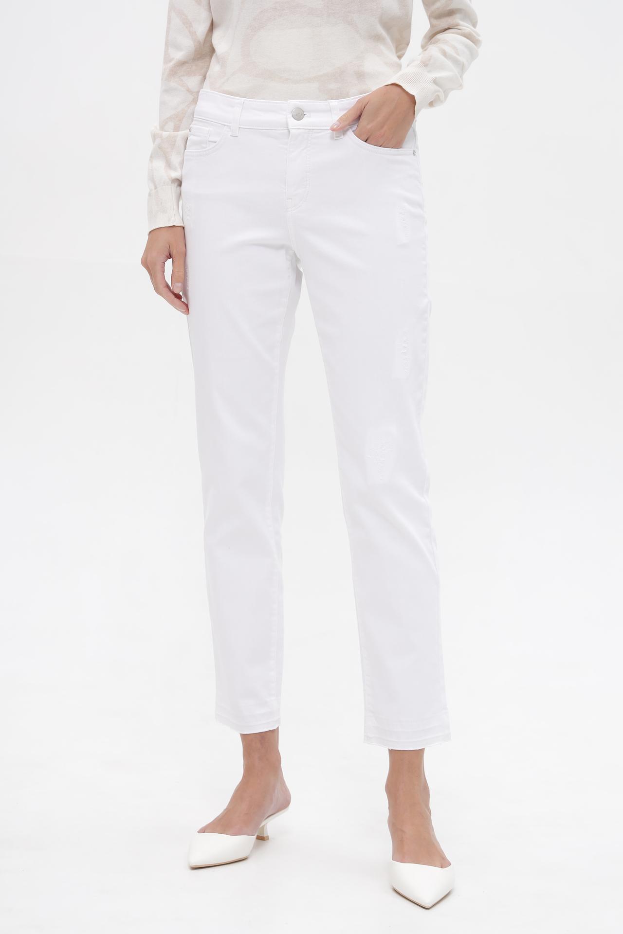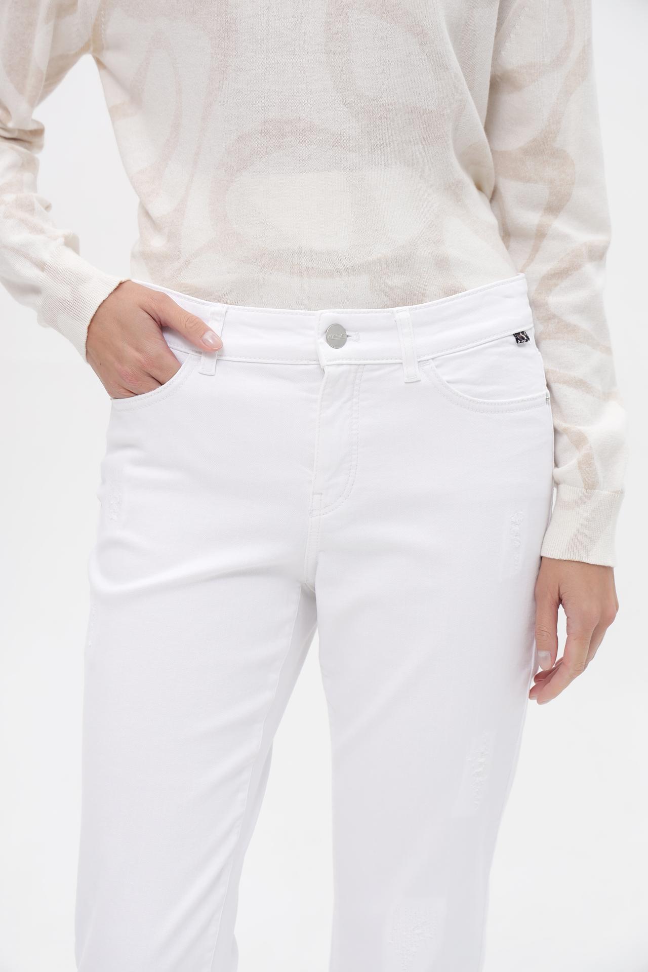 Джинсы Marc Cain белого цвета — идеальная базовая модель для создания стильных и свежих образов. Эти женские джинсы прямого, слегка зауженного кроя с укороченной длиной до щиколотки гармонично впишутся как в повседневный, так и в более элегантный гардероб.
