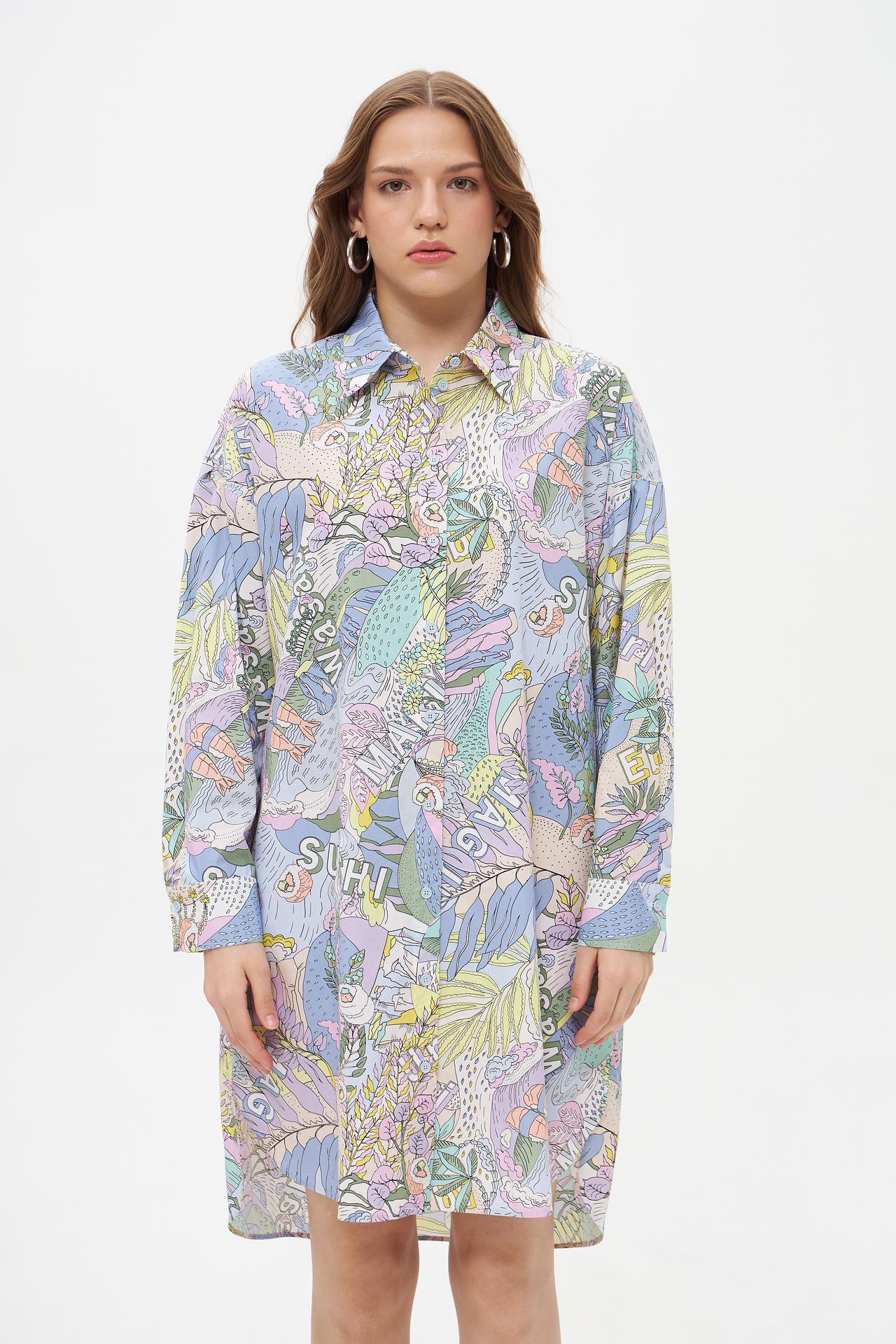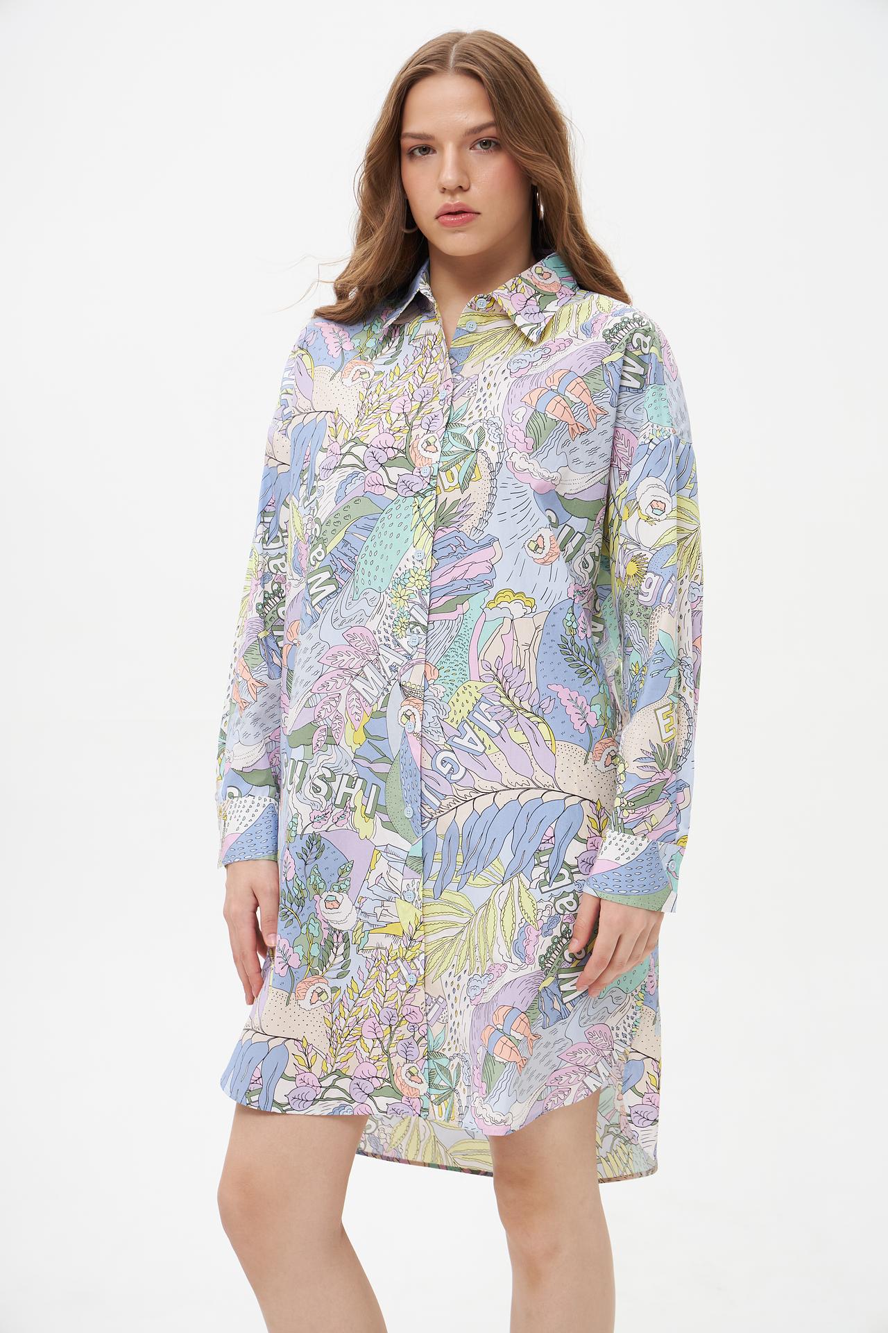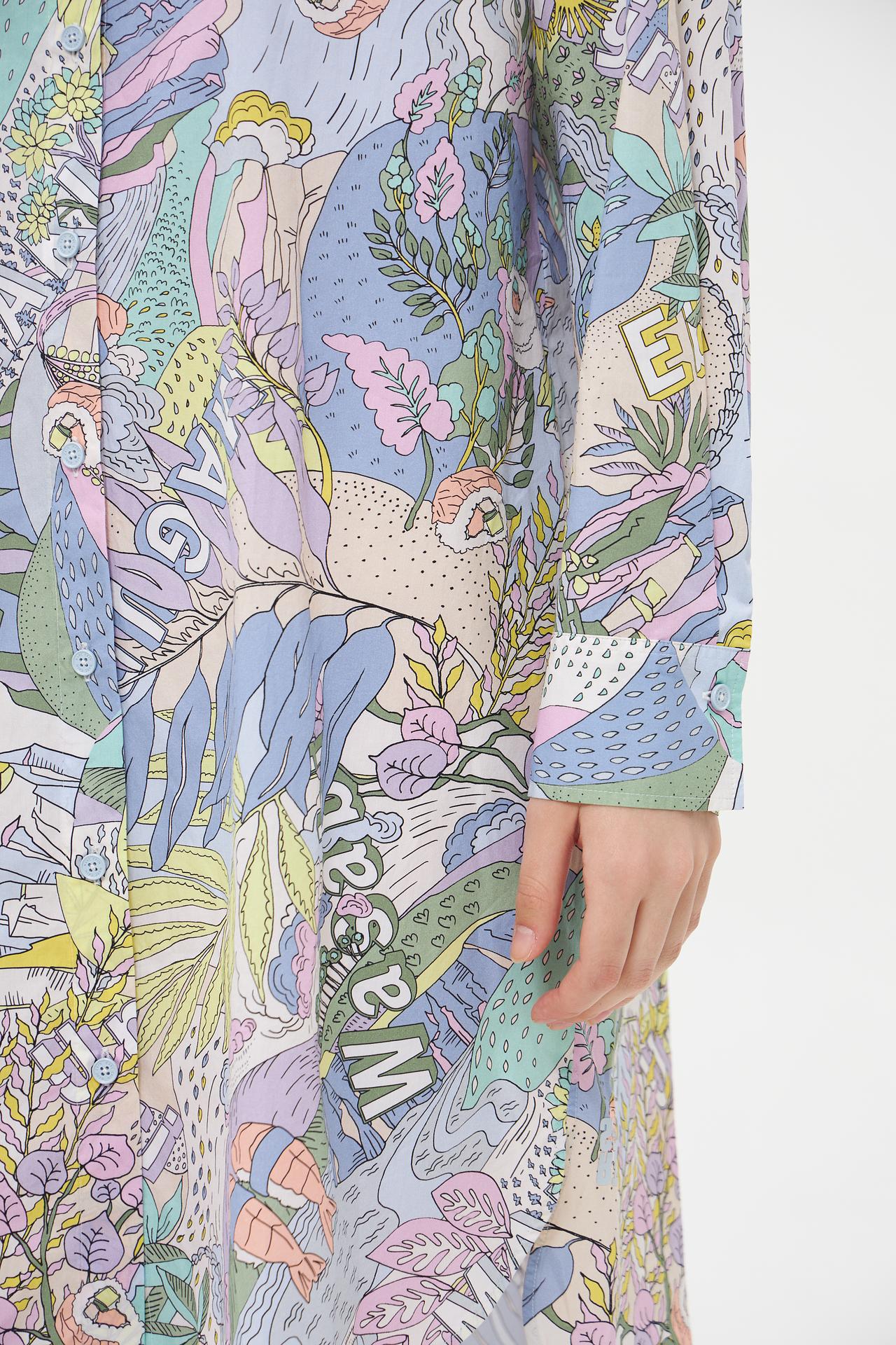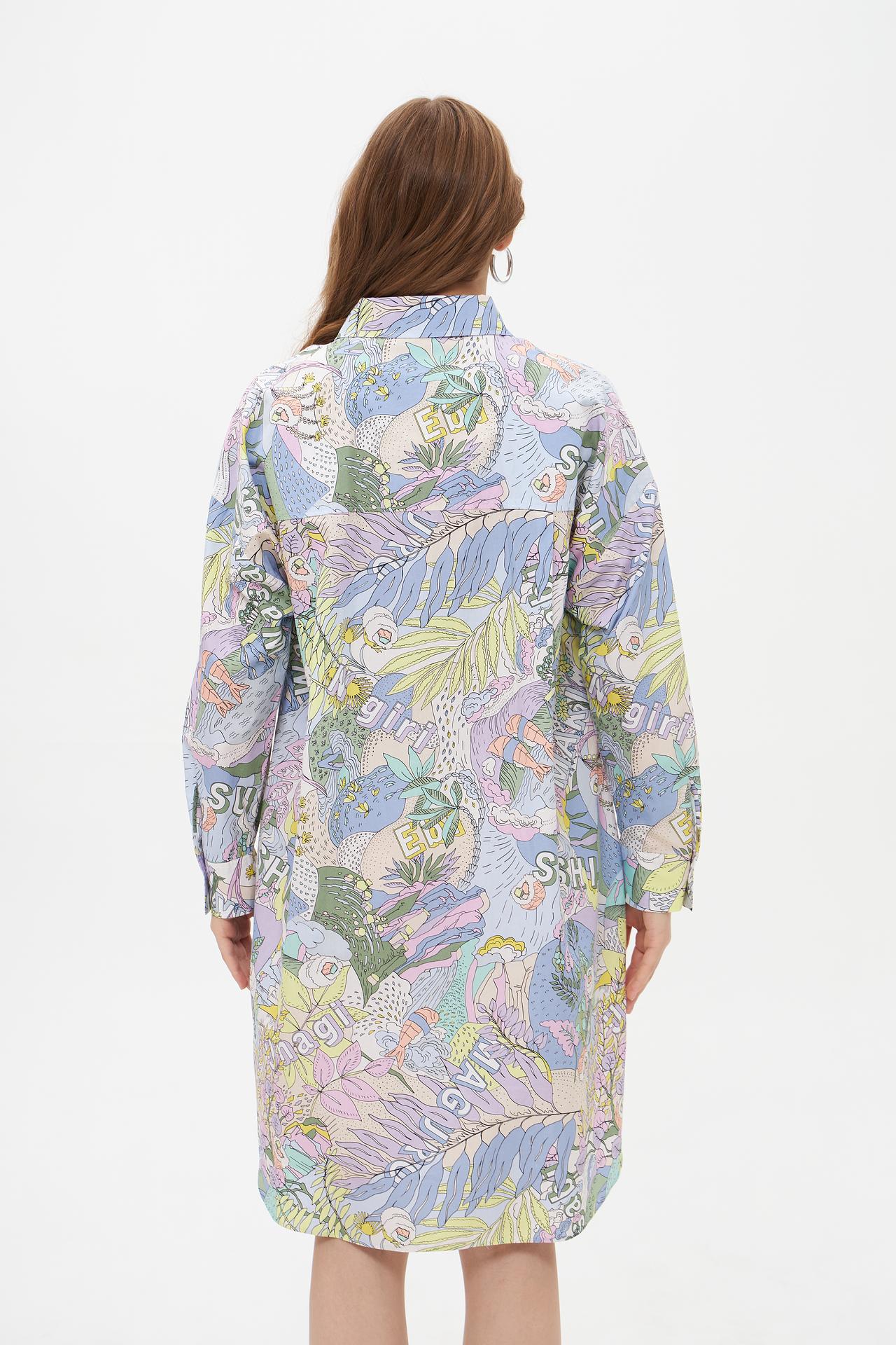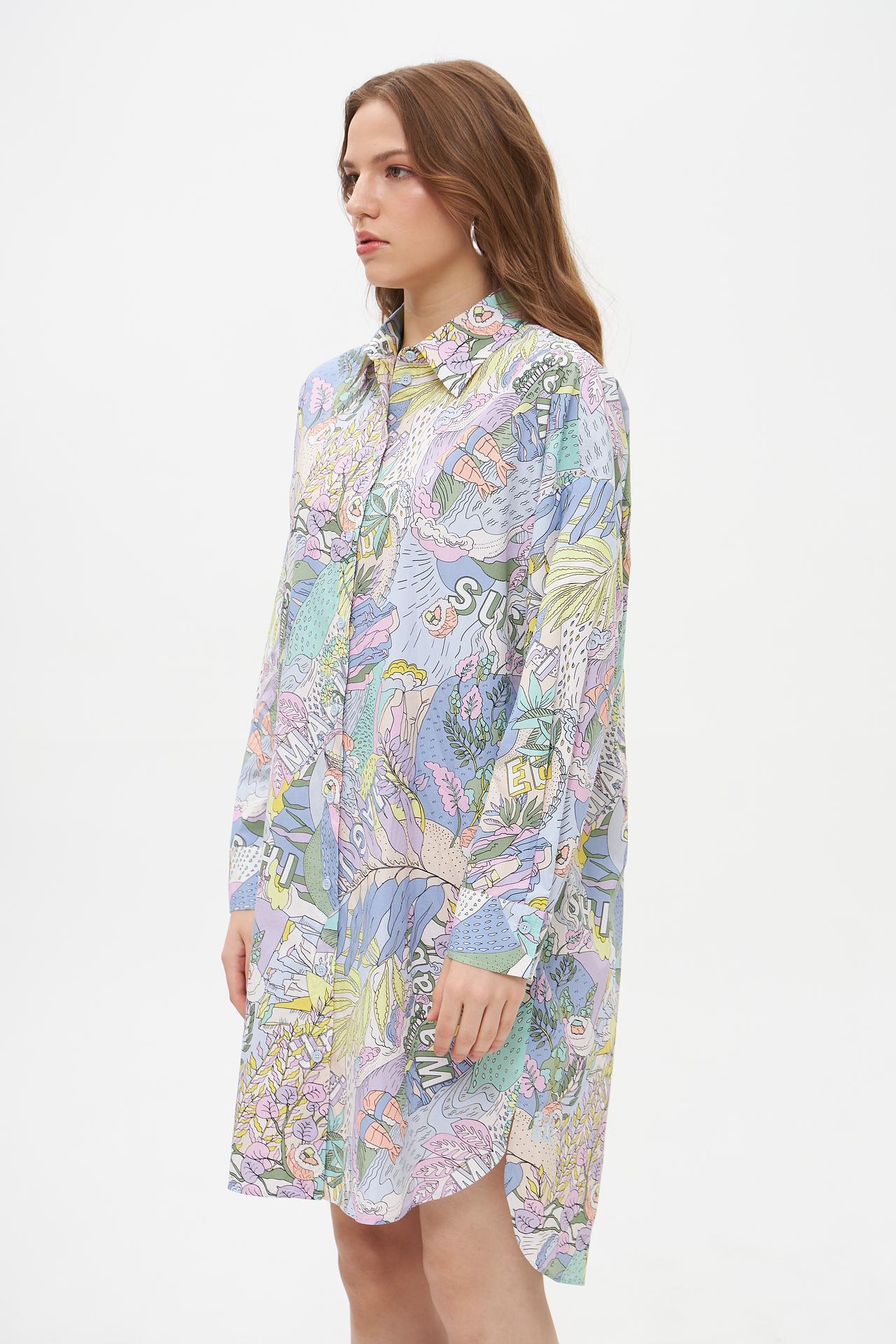Эффектное платье-рубашка Marc Cain, выполненное из 100% органического хлопка, станет ярким акцентом в вашем гардеробе. Мягкий, дышащий материал обеспечивает комфорт в течение всего дня. Оригинальный и красочный принт придаёт платью неповторимый стиль и индивидуальность. Это платье идеально подходит для создания как повседневных, так и более нарядных образов.