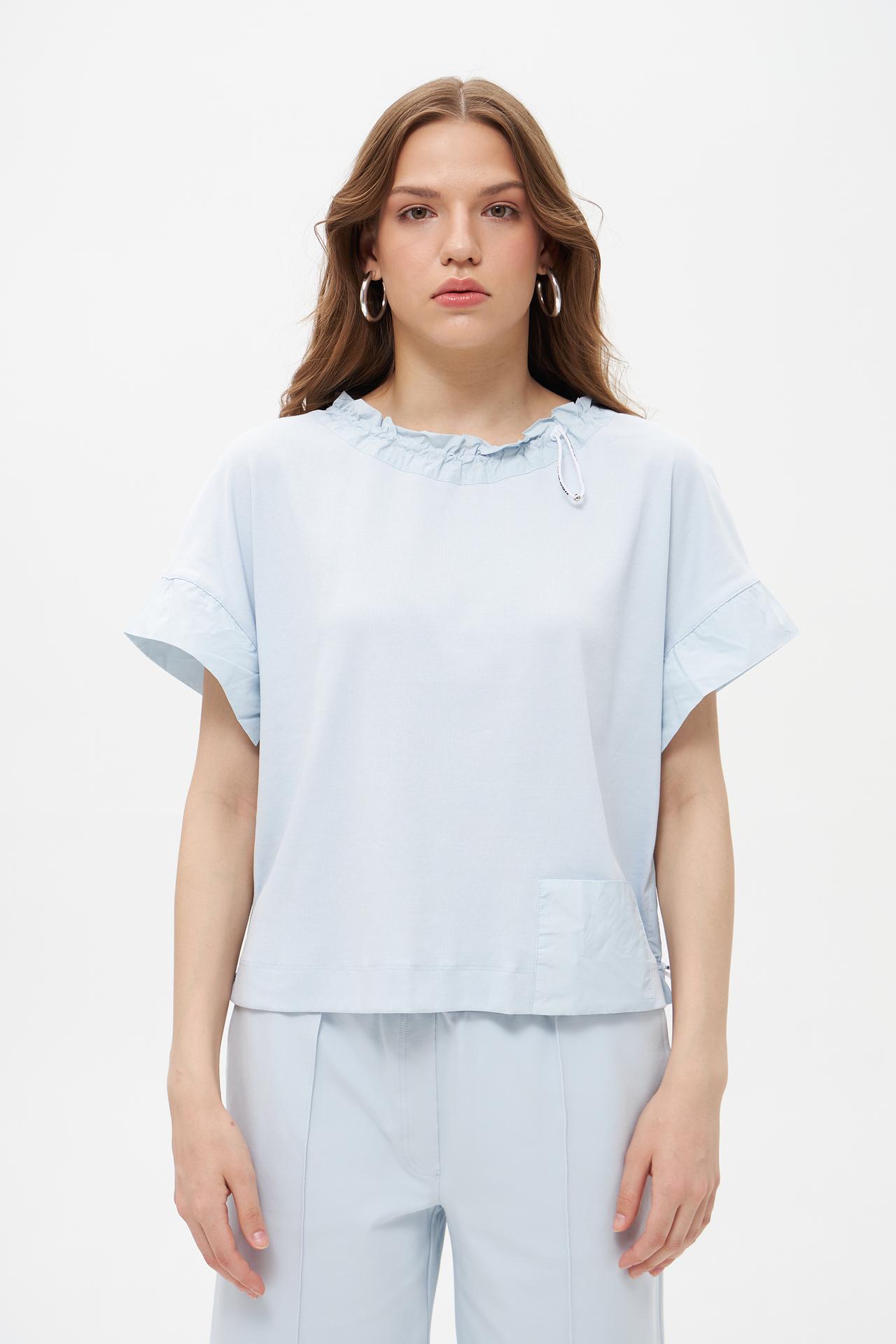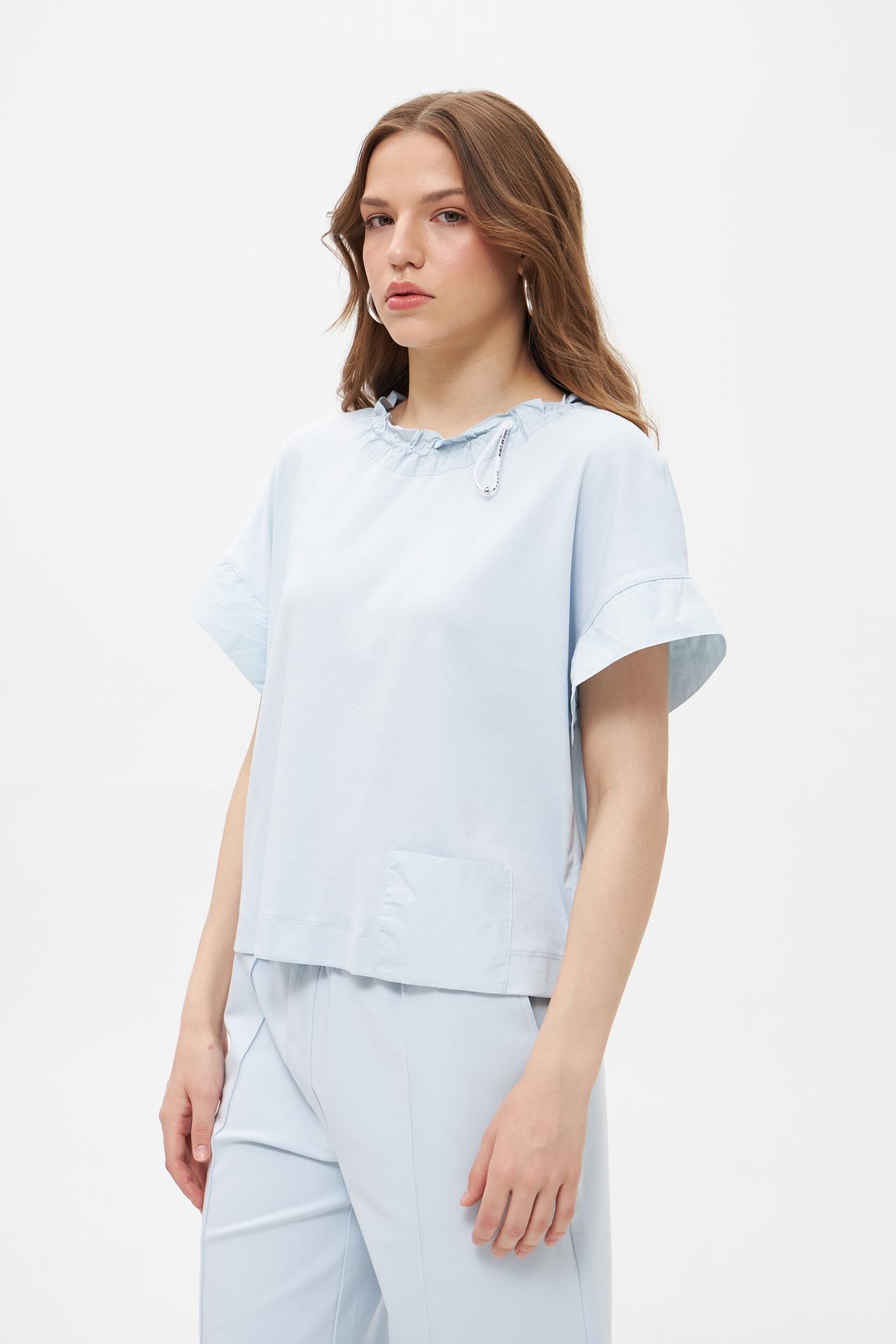 Блуза Marc Cain небесно-голубого цвета с рюшами