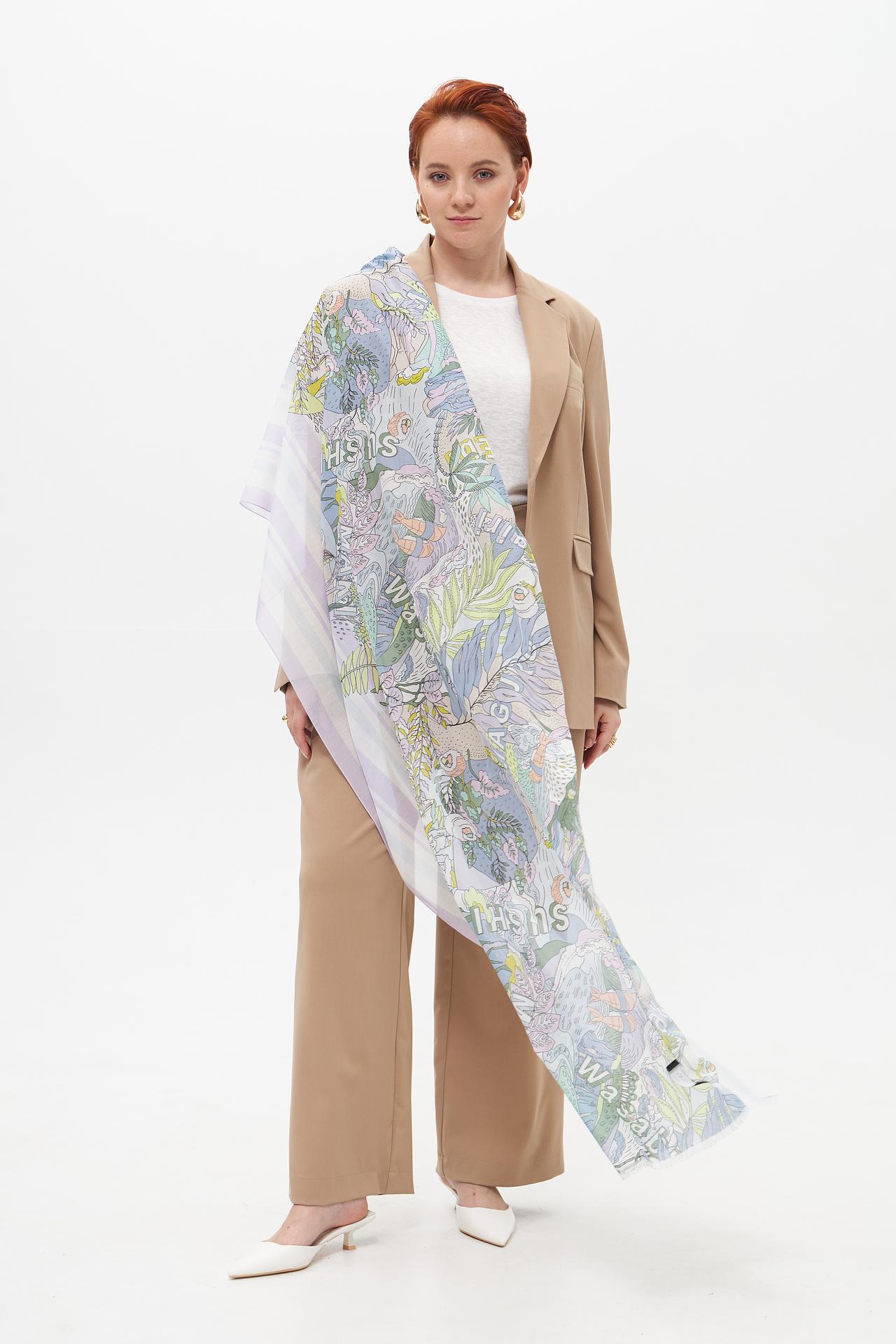 - Уникальный дизайн: Шарф украшен оригинальным принтом, который добавит изюминку в любой наряд.