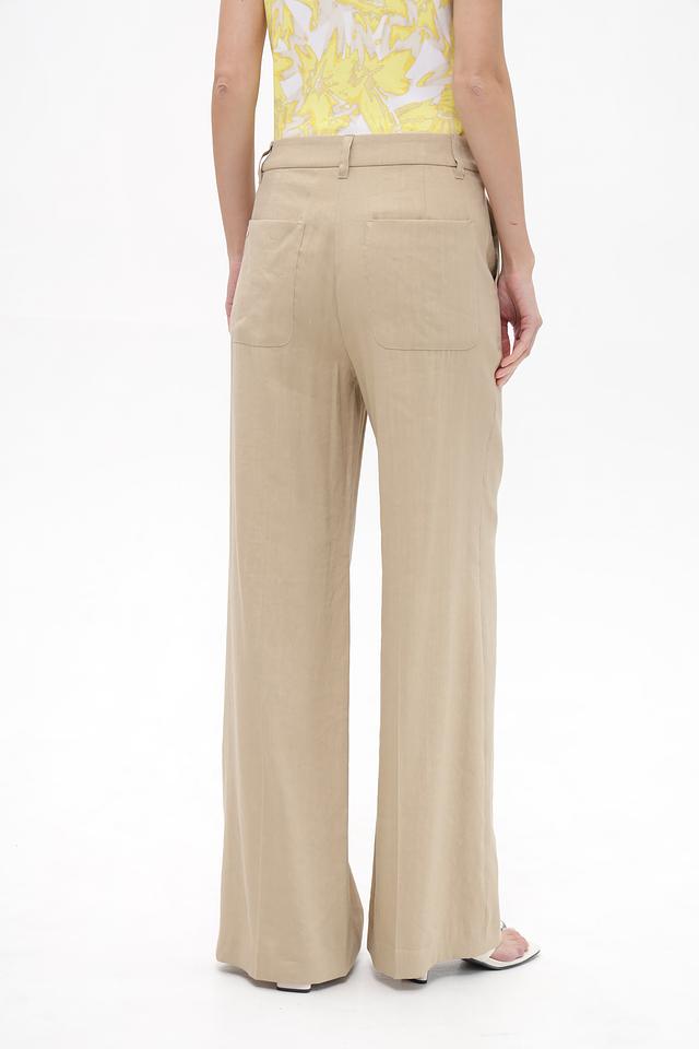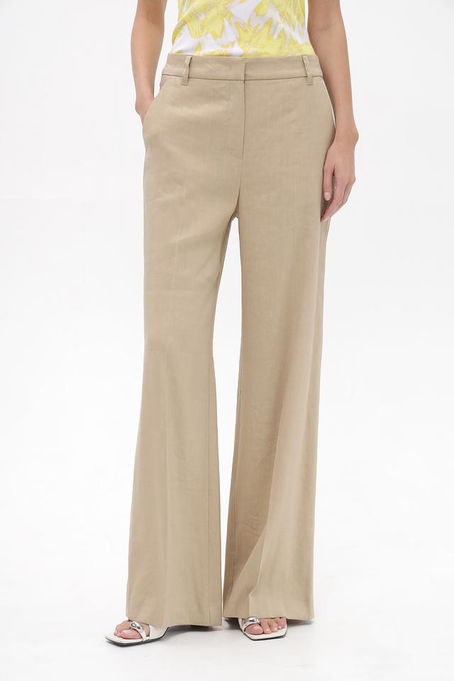 Бежевые брюки клеш от Marc Cain из льна с вискозой — идеальный выбор для создания элегантного и комфортного образа. Модель выполнена из натуральных материалов, обеспечивающих приятные тактильные ощущения и воздухопроницаемость. Состав: лен 62%, вискоза 35%, эластан 3%
