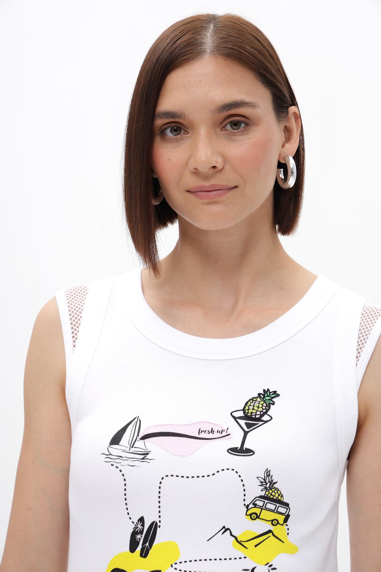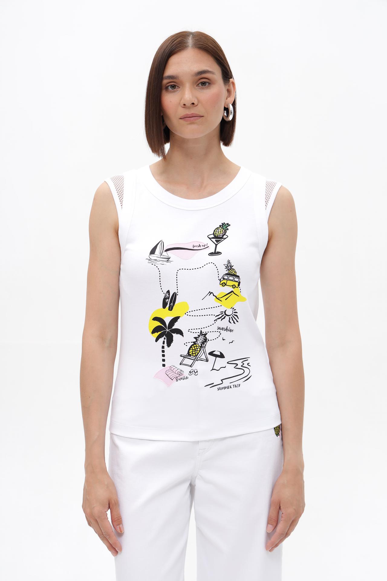 Топ Marc Cain белый с тропическим принтом и сетчатыми вставками