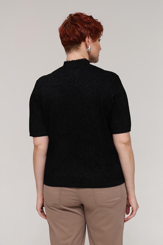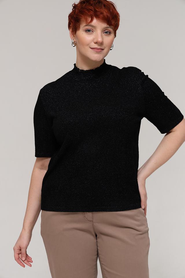 Модель имеет короткие рукава и высокий воротник-стойку, что делает её универсальной и подходящей для различных случаев. Пуловер отлично сочетается с брюками, юбками и джинсами, позволяя создавать разнообразные стильные образы.