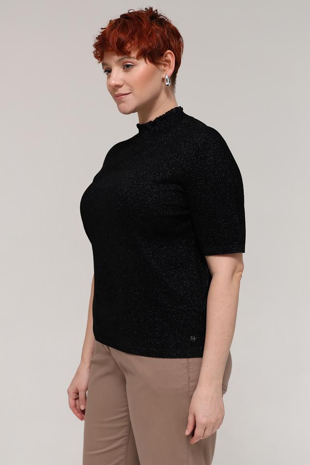 Чёрный пуловер от Marc Cain, выполненный с добавлением пайеток, отличается короткими рукавами и высоким воротником-стойкой. Модель из полиамида, вискозы и металла станет стильным дополнением к вашему гардеробу. Состав: полиамид 44%, вискоза 42%, металл 14%