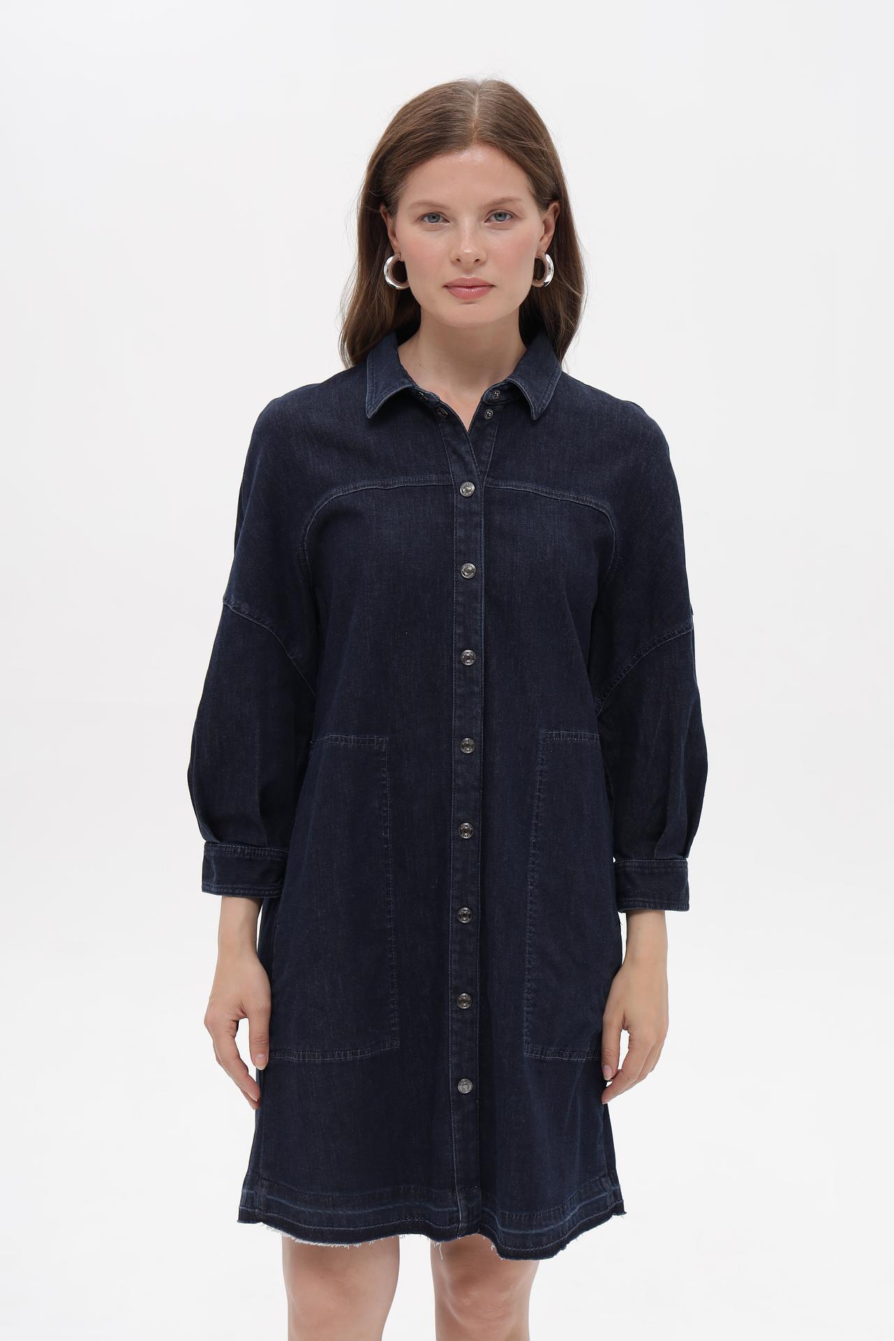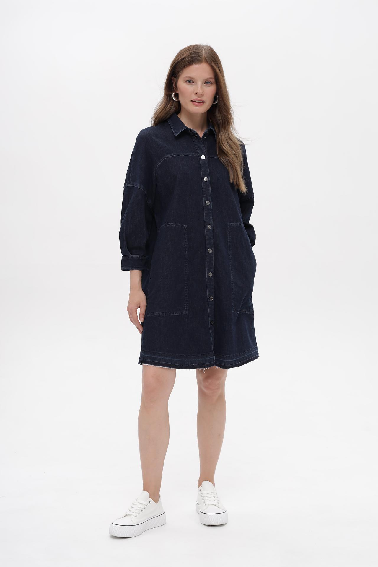 Представляем вам элегантное джинсовое платье-рубашку от Marc Cain, которое станет идеальным дополнением вашего гардероба. Это платье сочетает в себе классический стиль и современный комфорт, благодаря тщательно подобранным материалам.