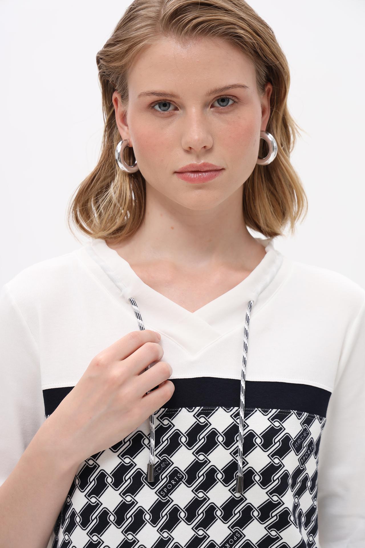 Блуза Marc Cain белая с геометрическим узором и завязками