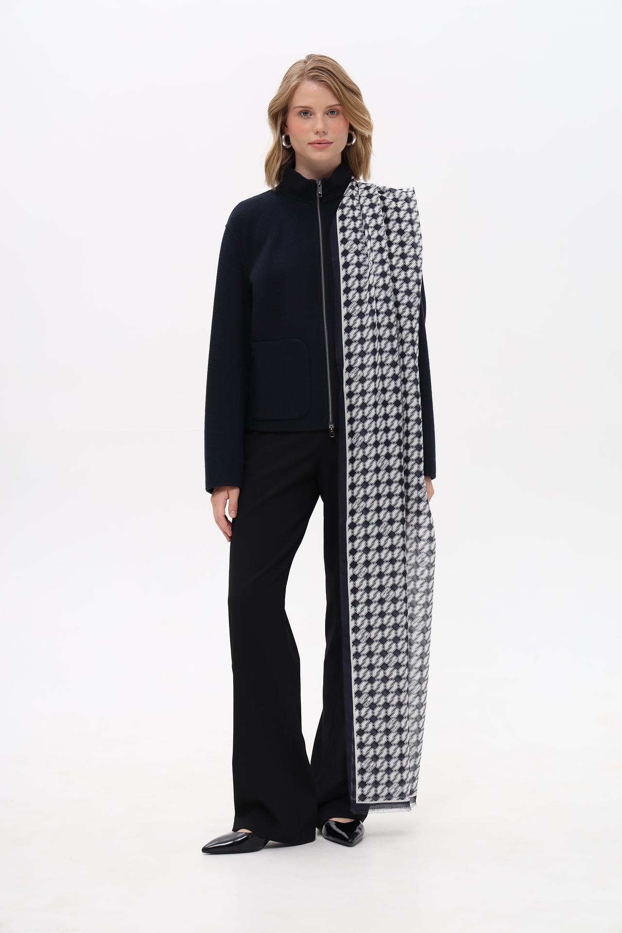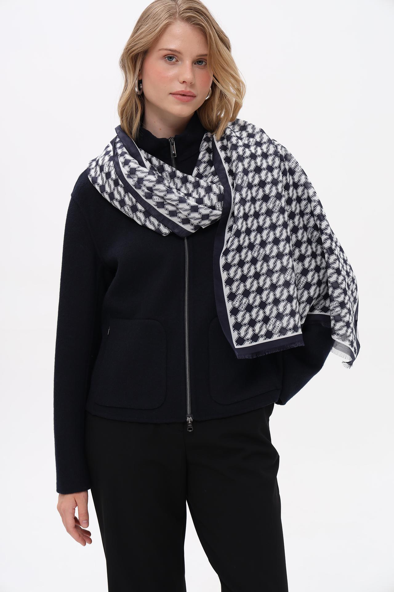 Шарф Marc Cain узорчатый темно-синий с белым