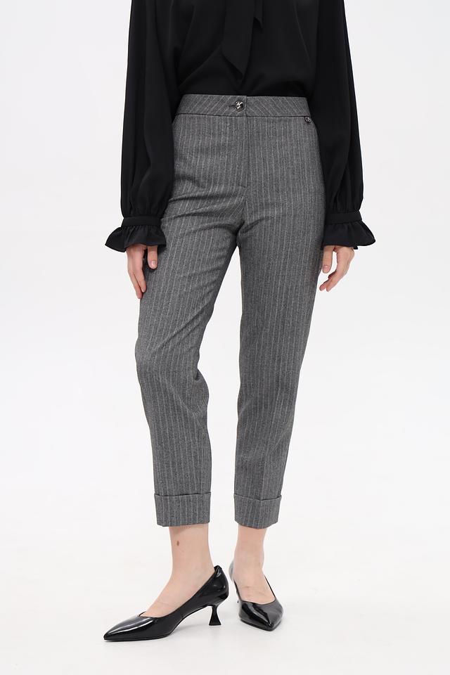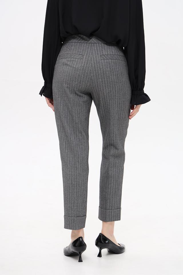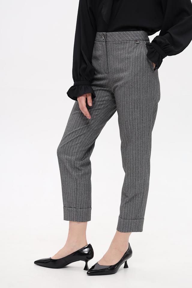 Представляем элегантные брюки от Marc Cain, выполненные в сером цвете с вертикальной полоской. Классический крой и зауженный силуэт делают их универсальным элементом гардероба.