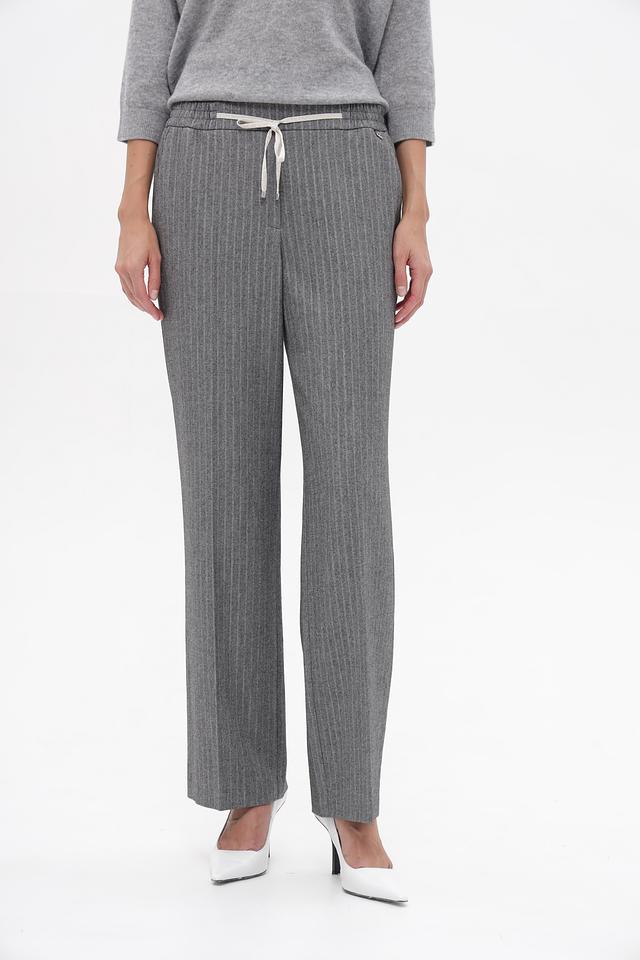 Стильные брюки Marc Cain серого цвета с вертикальной полоской, выполнены из приятной на ощупь ткани. Состав: полиэстер, вискоза, эластан. Состав: полиэстер 69%, вискоза 29%, эластан 2%